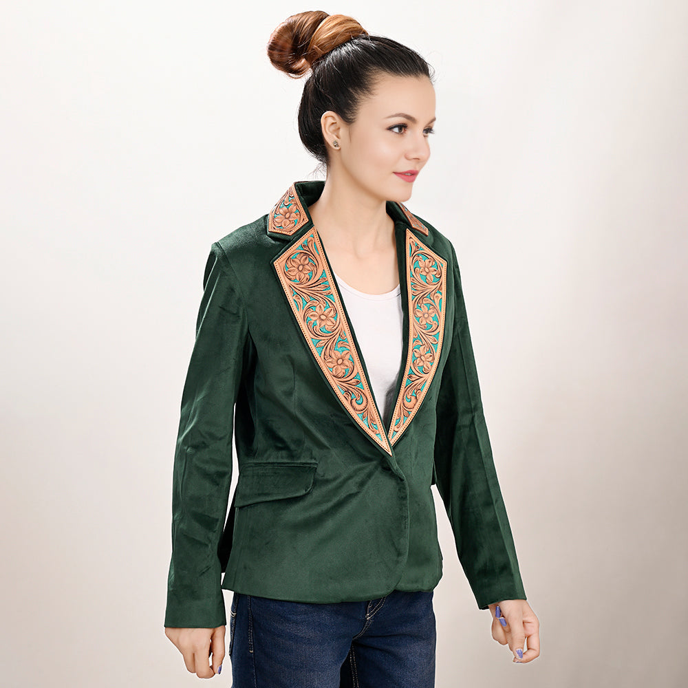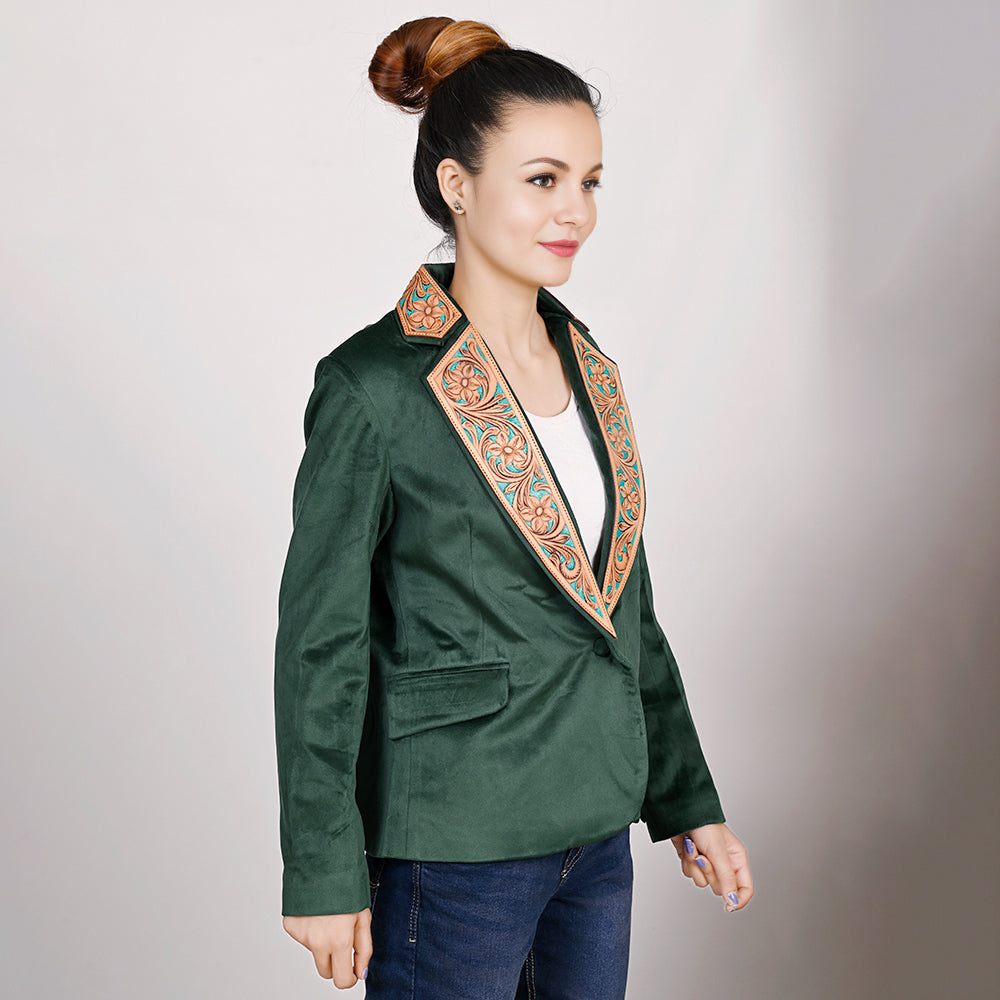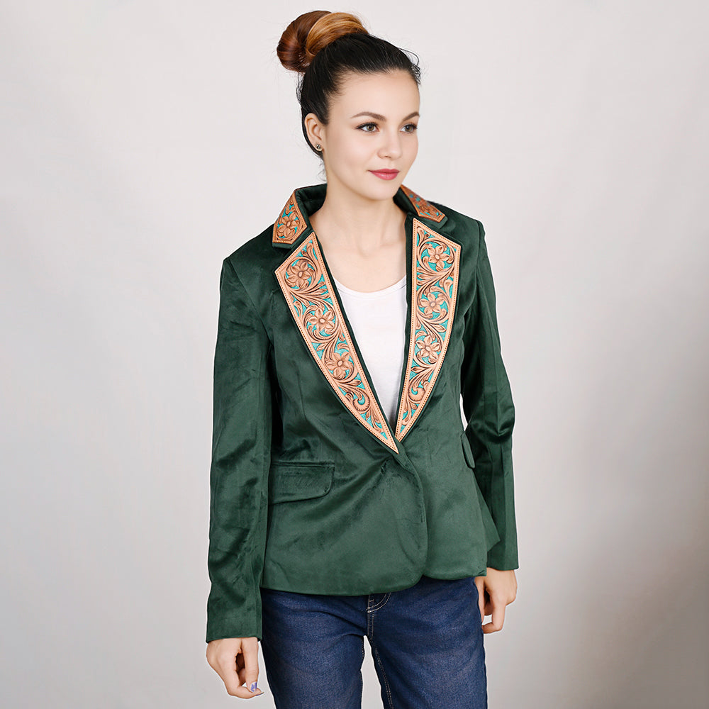 ADBZ024 Genuine leather Hand tooled hand carved Women Blazer dress jacket ladies Girl