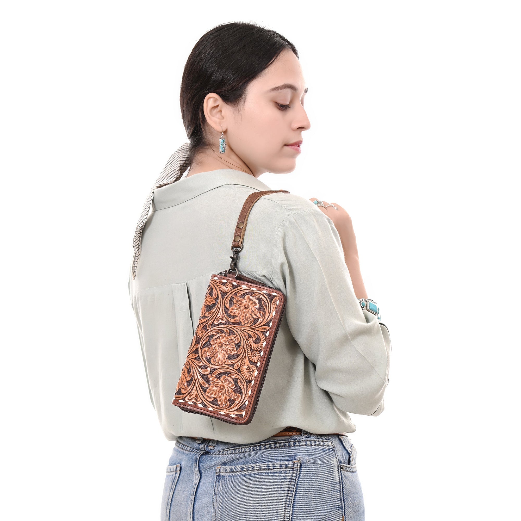 Clutch Beautifully Hand Tooled Genuine Leather women bag western handbag purse