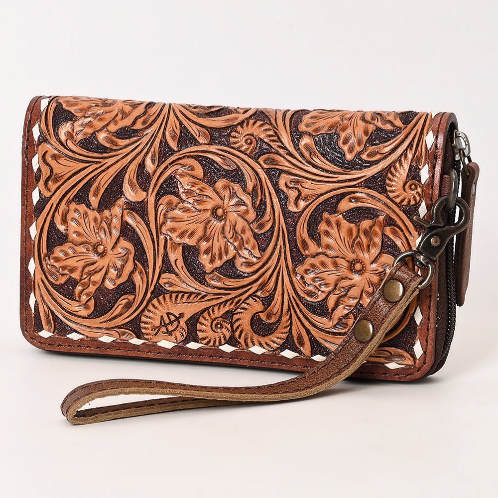 American Darling Adbgz844A Wristlet Hand Tooled Genuine Leather Women Bag Western Handbag Purse