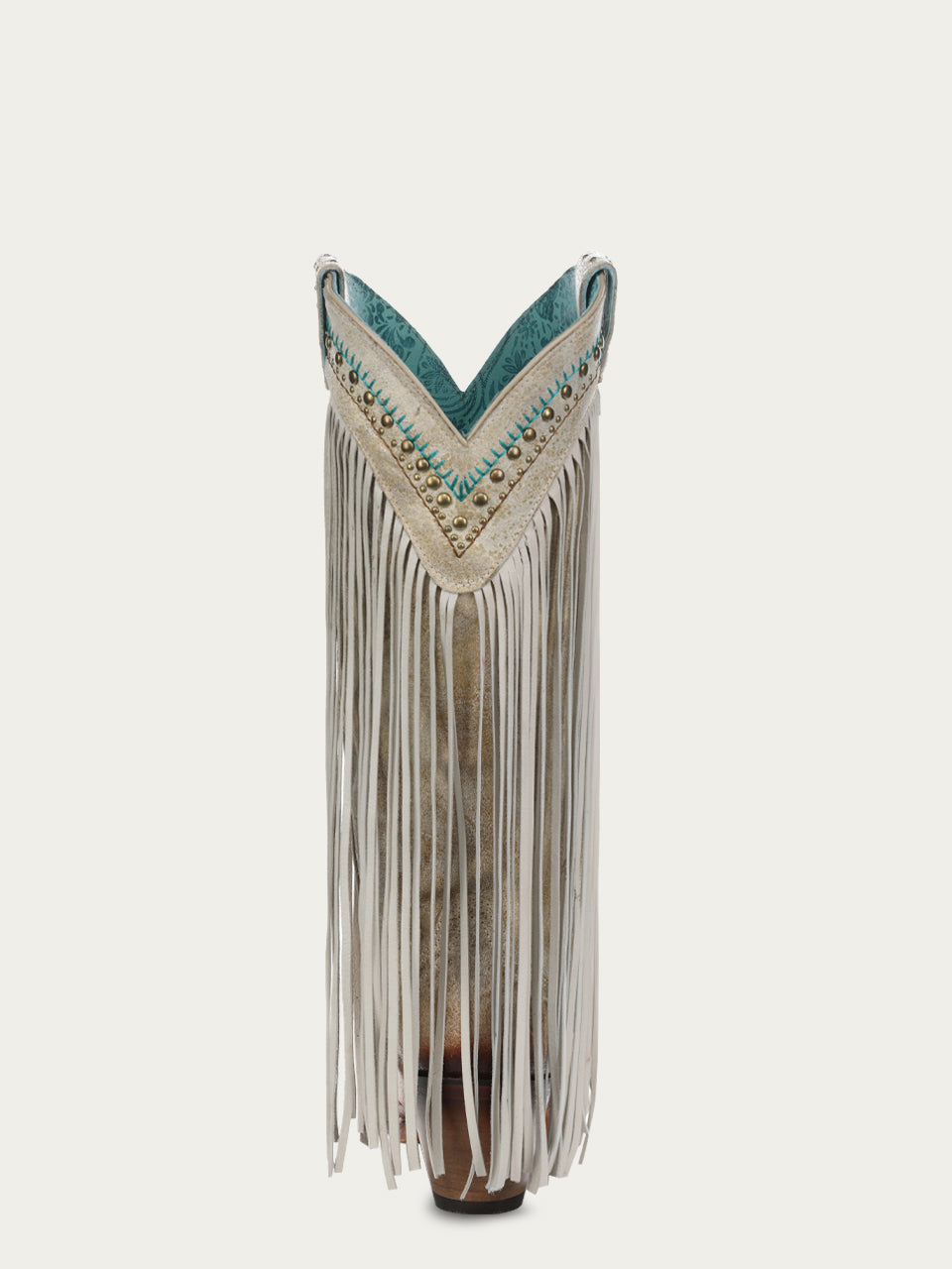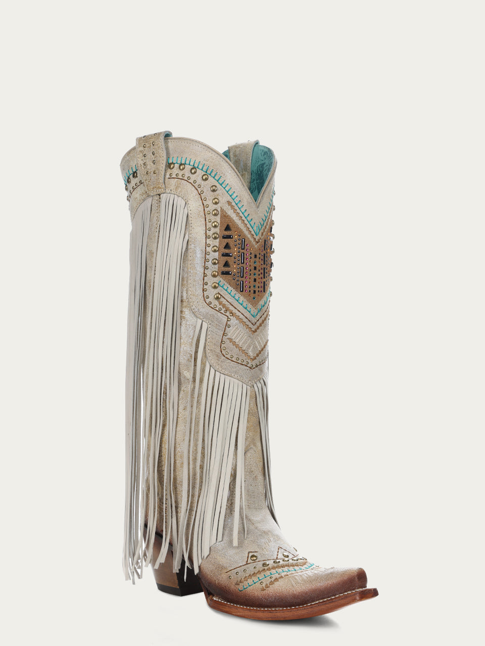 A4514 - WOMEN'S SILVER-GOLD FINISH WITH CRYSTAL FRINGE, HARNESS AND STUDS SNIP TOE COWBOY BOOT