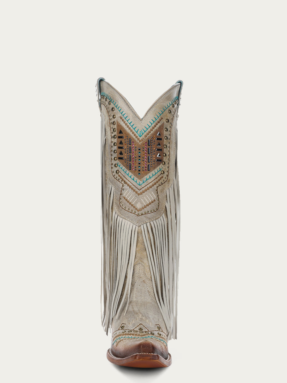 C3424 - WOMEN'S CRYSTALS PATTERN EMBROIDERY AND FRINGE SNIP TOE BROWN COWBOY BOOT
