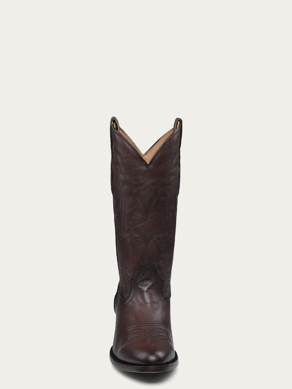 A4540 - MEN'S EMBROIDERY BROWN COWHIDE J TOE COWBOY BOOT