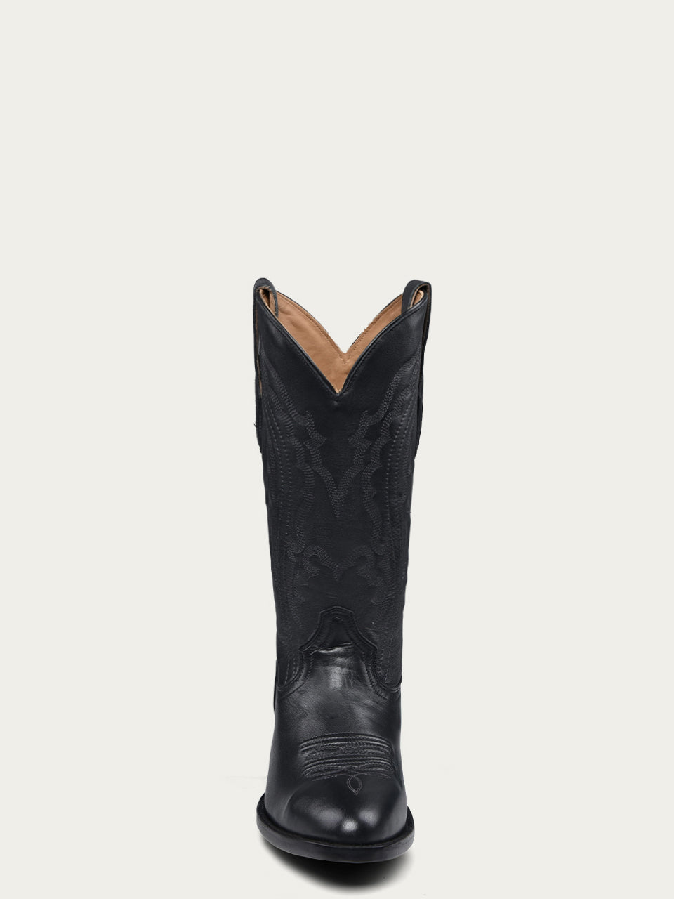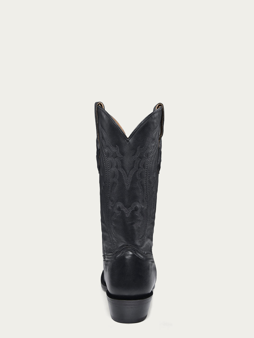 A4541 - MEN'S EMBROIDERY BLACK COWHIDE J TOE COWBOY BOOT