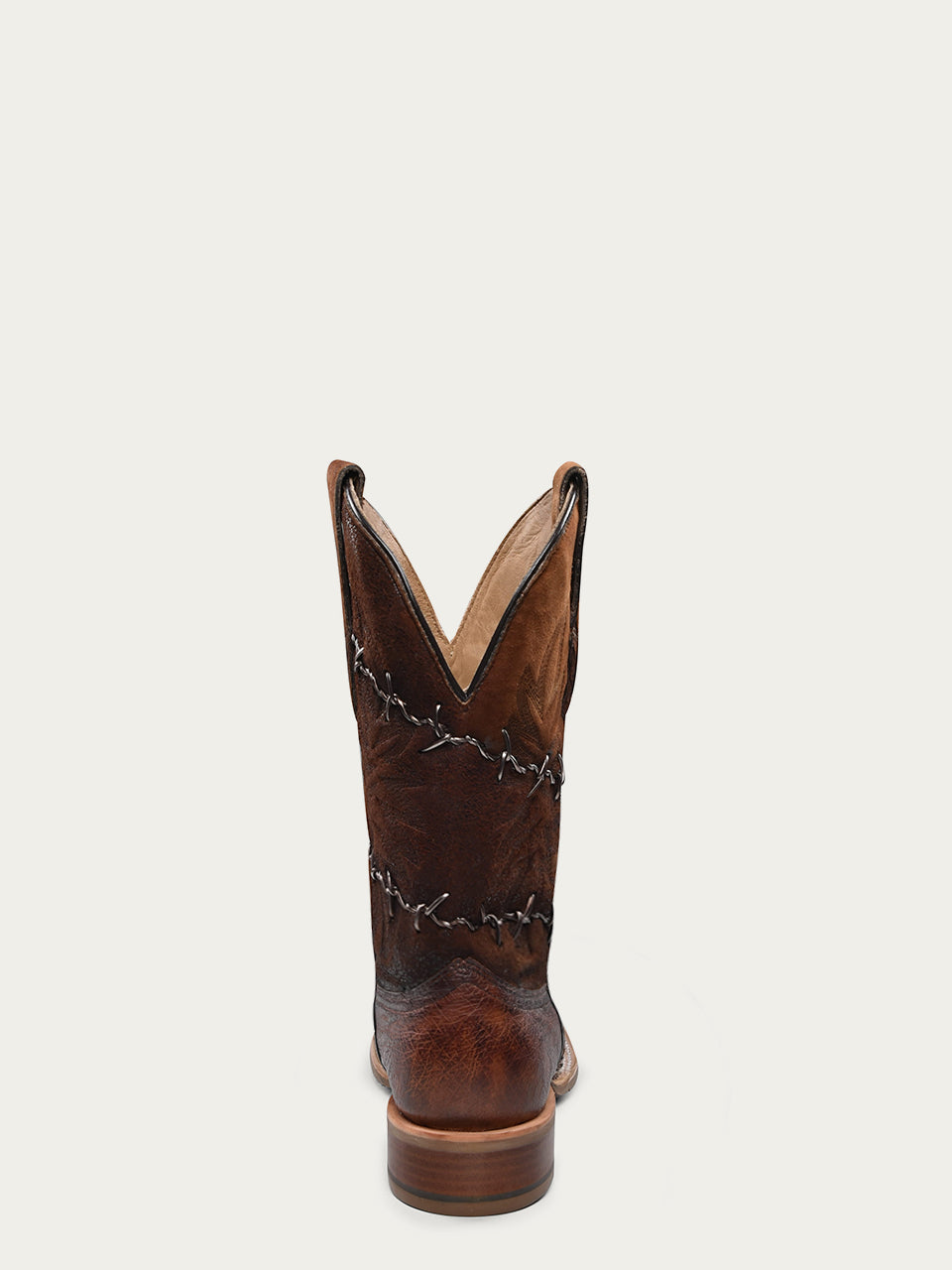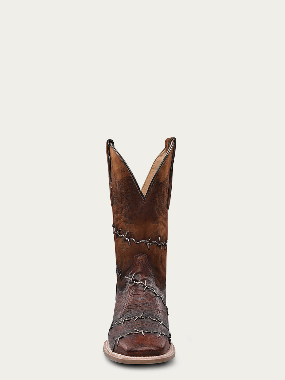 A4555 - MEN'S BARBED WIRE SHEDRON LAMB WOVEN SQUARE TOE OSTRICH COWBOY BOOT