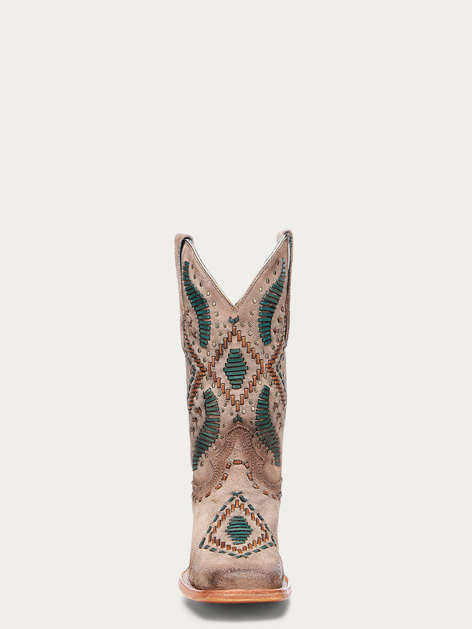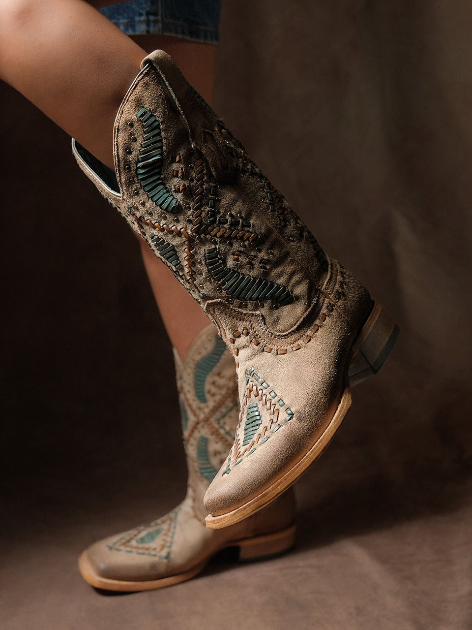 A4840 - WOMEN'S WOVEN EMBROIDERY AND STUDS WIDE SQUARE TOE SAND COWBOY BOOT