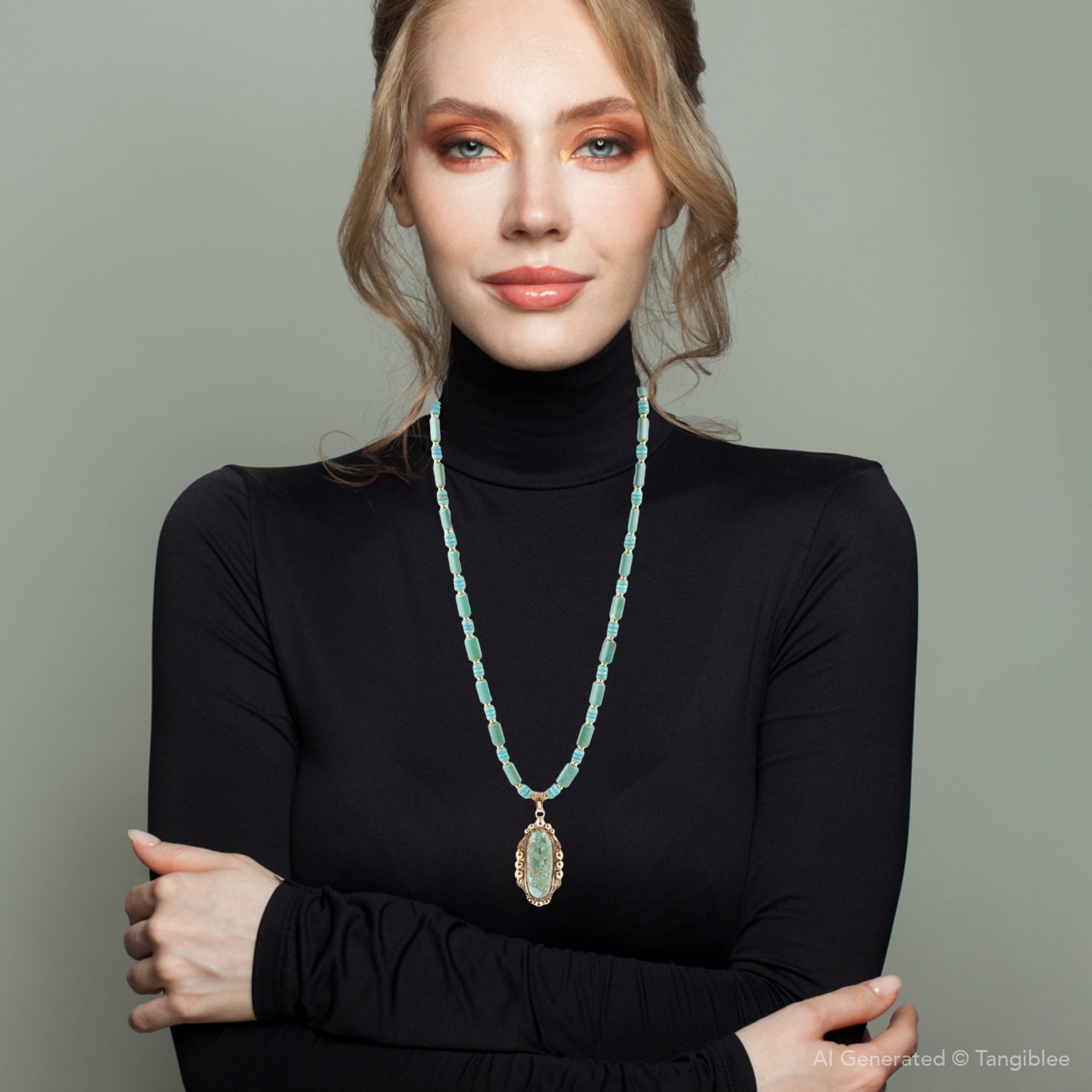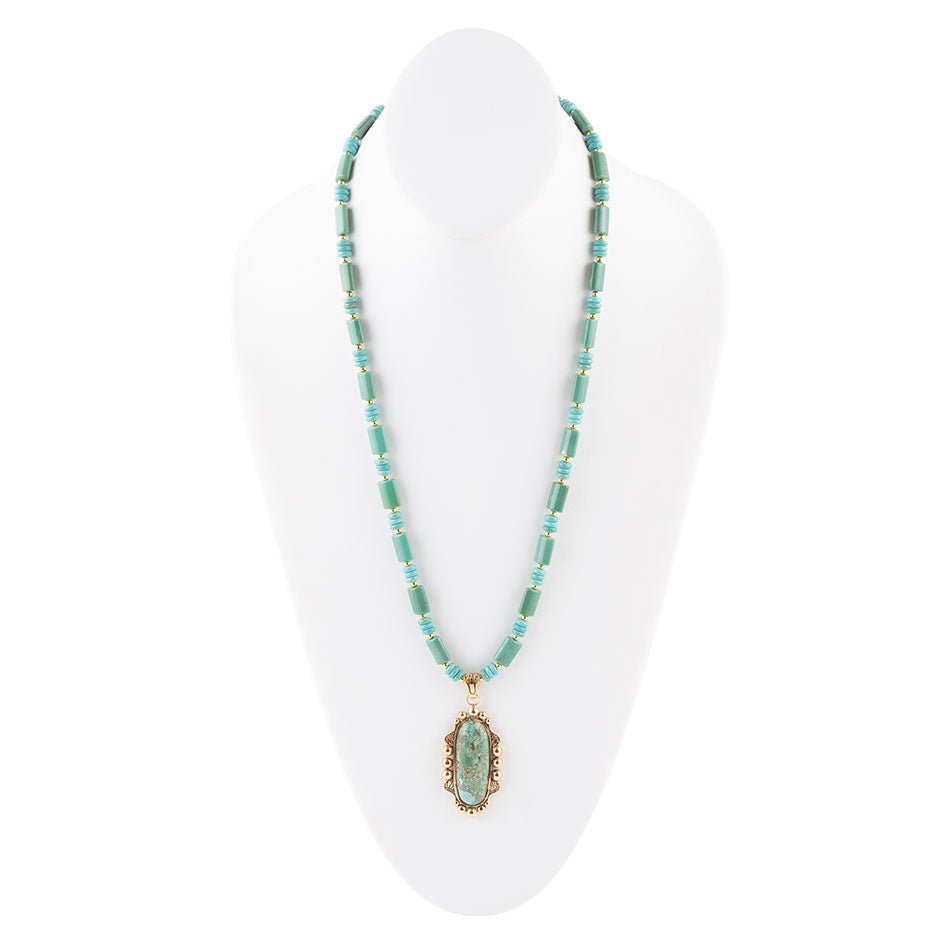 Ajo Blue Abalone and Amazonite Wood Pendant Necklace