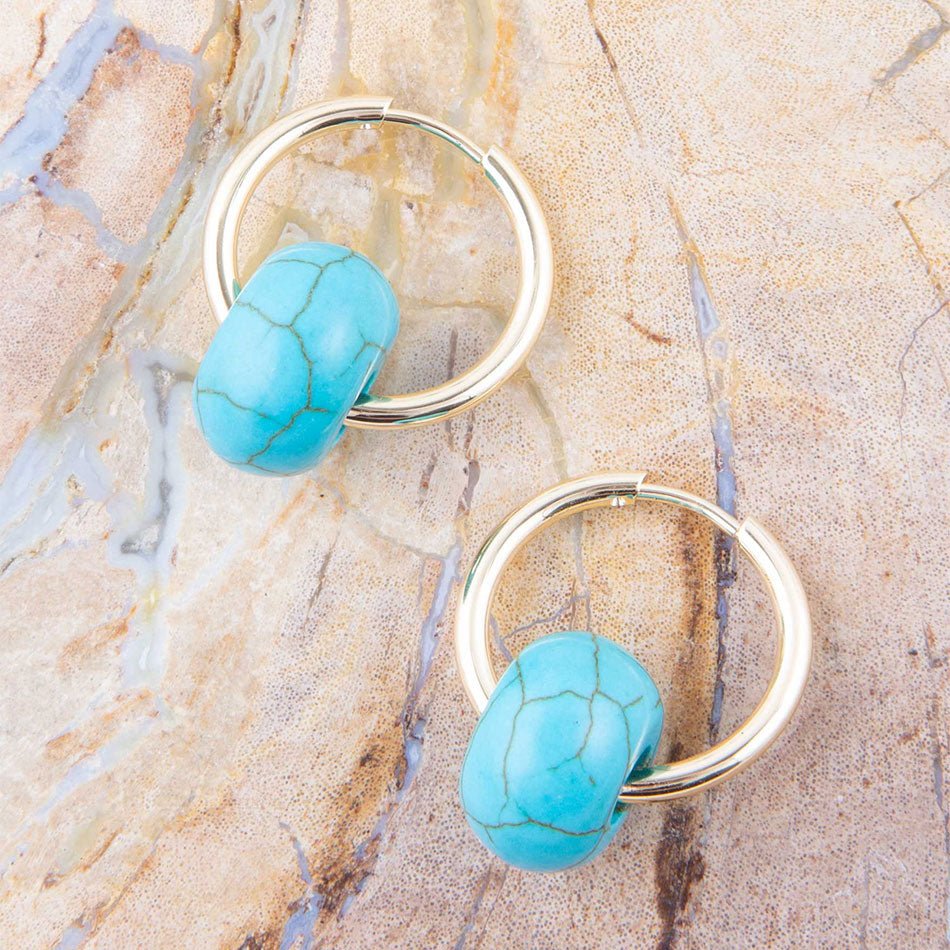 Blue Apatite and Abalone Stacked Sterling Silver Earrings