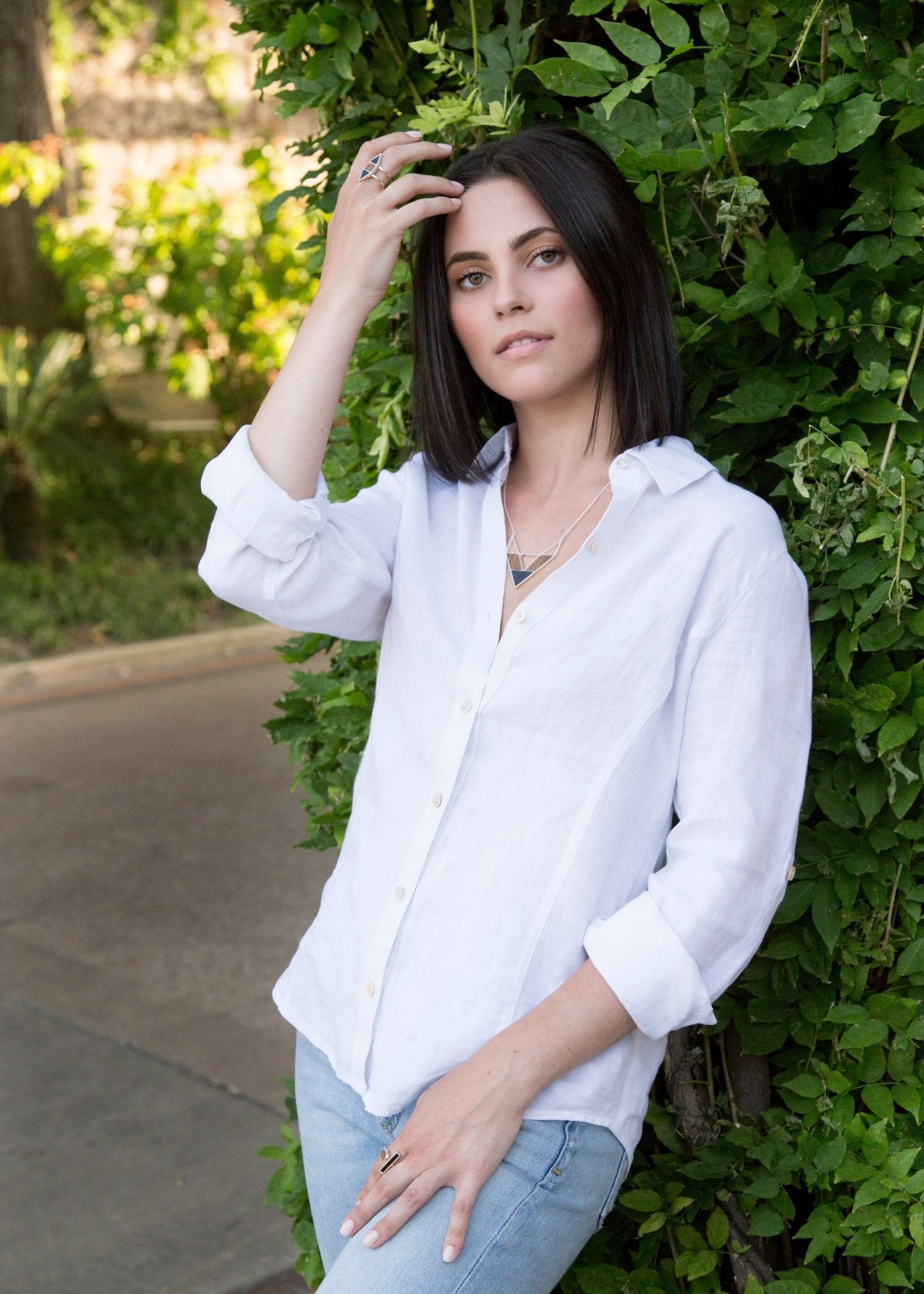 Point Made Wood and Onyx Sterling Silver Necklace