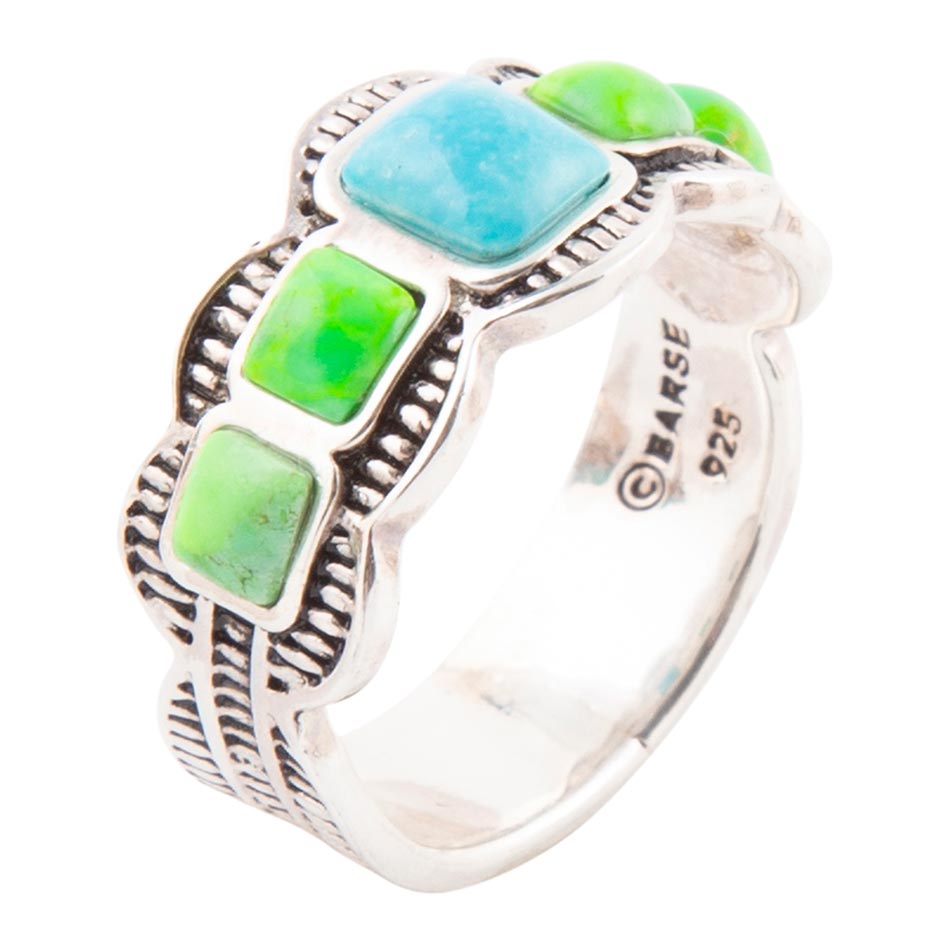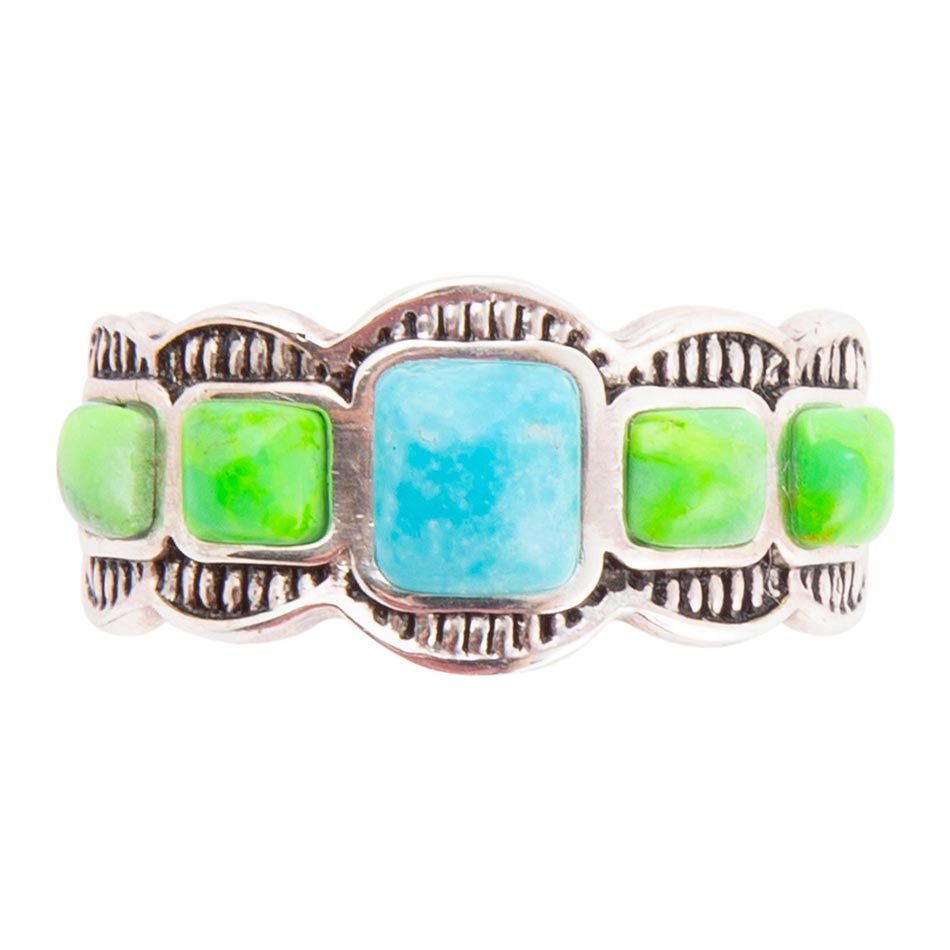 Zion Blue and Lime Green Turquoise Sterling Silver Ring