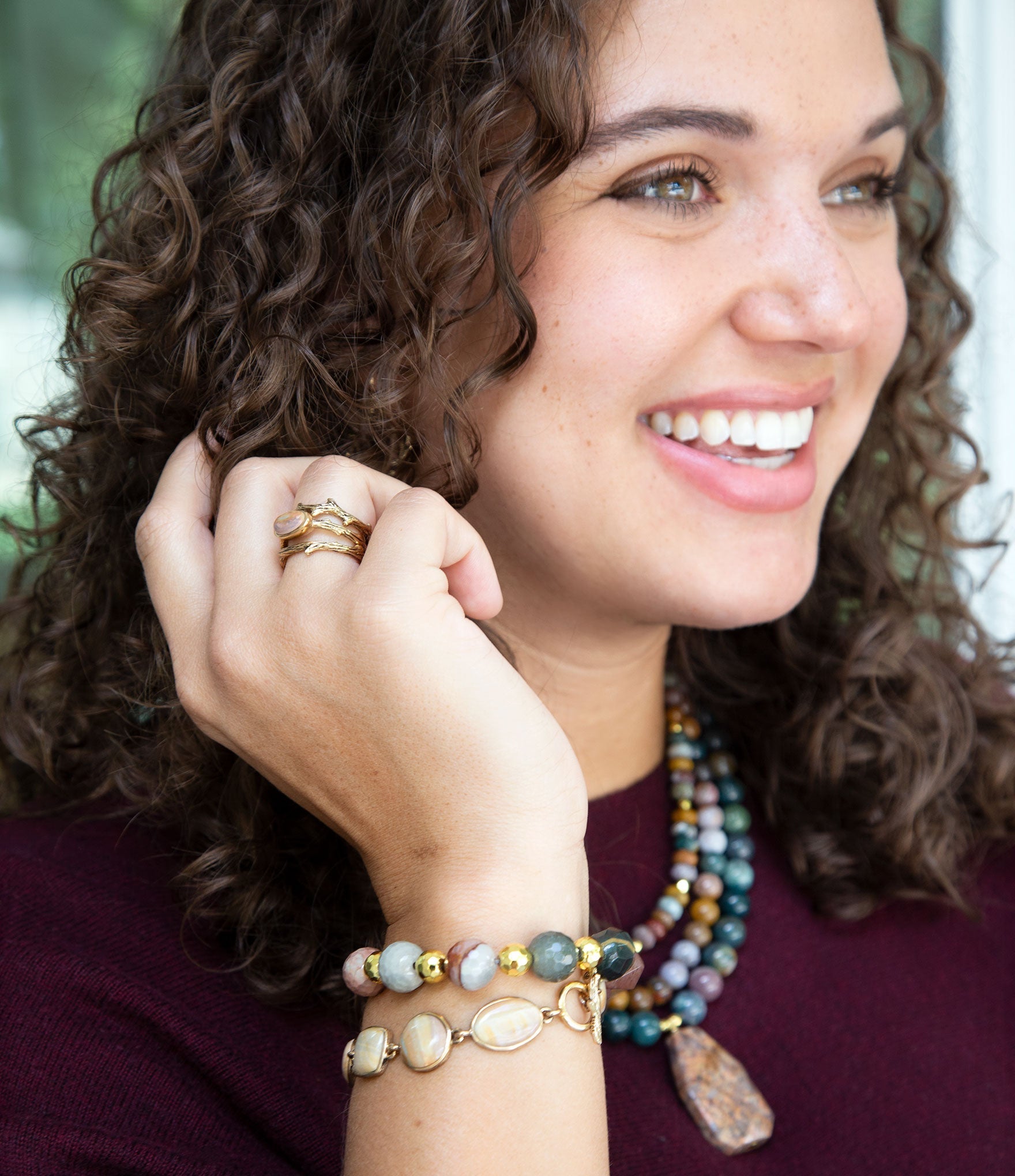 Modern Edge Turquoise and Spiny Oyster Shell Matrix Stone Golden Ring