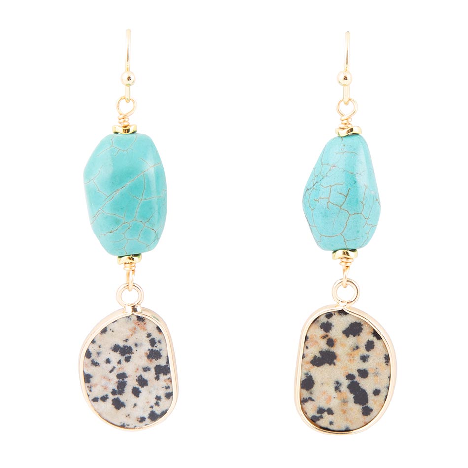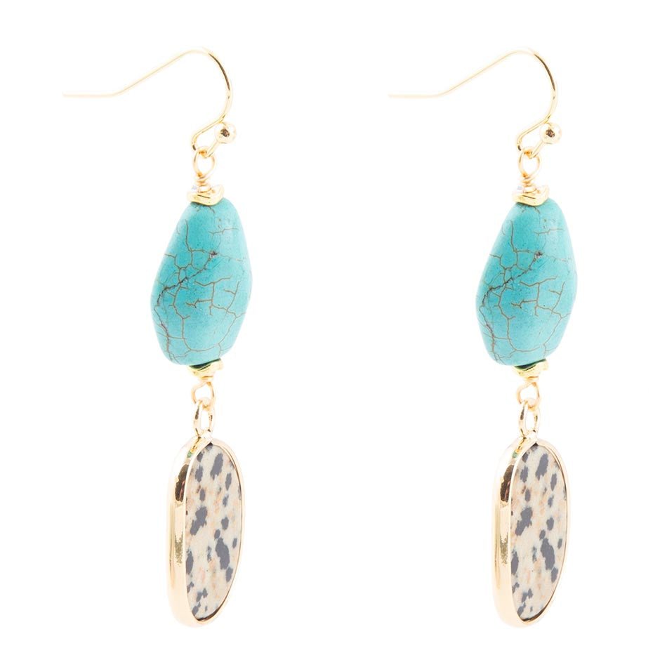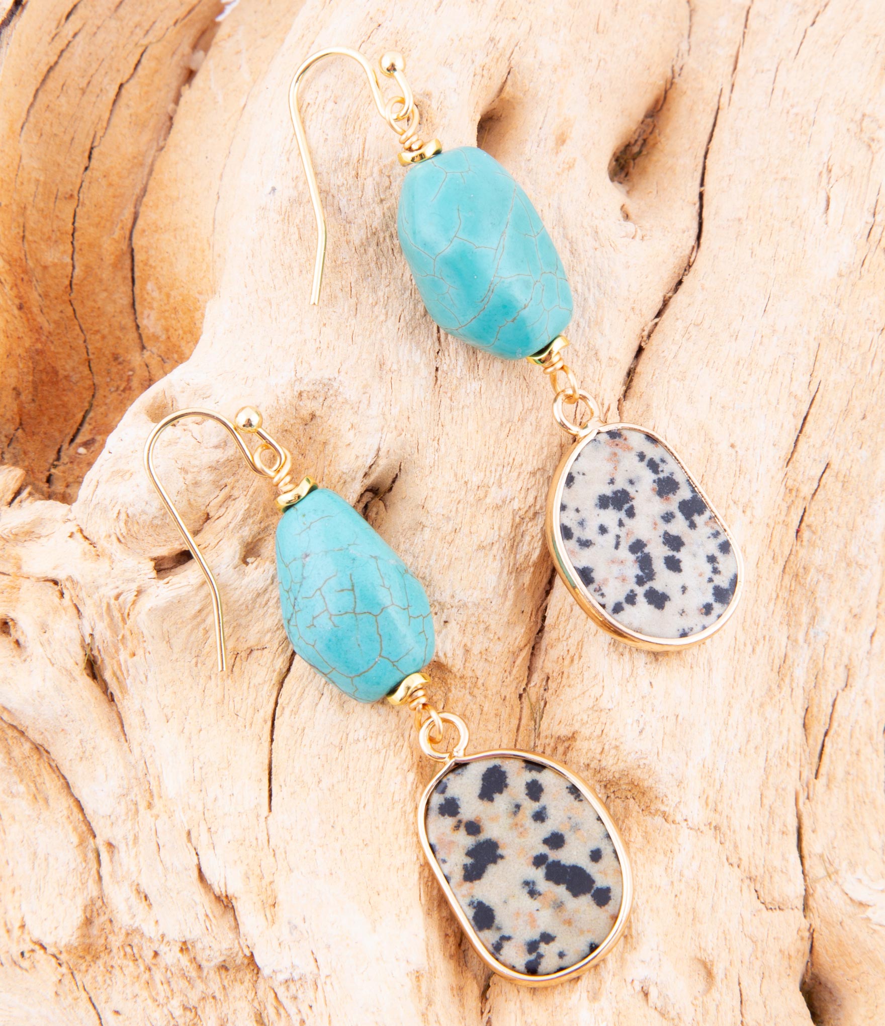 Dalmatian Jasper Blue Magnesite Golden Drop Earrings