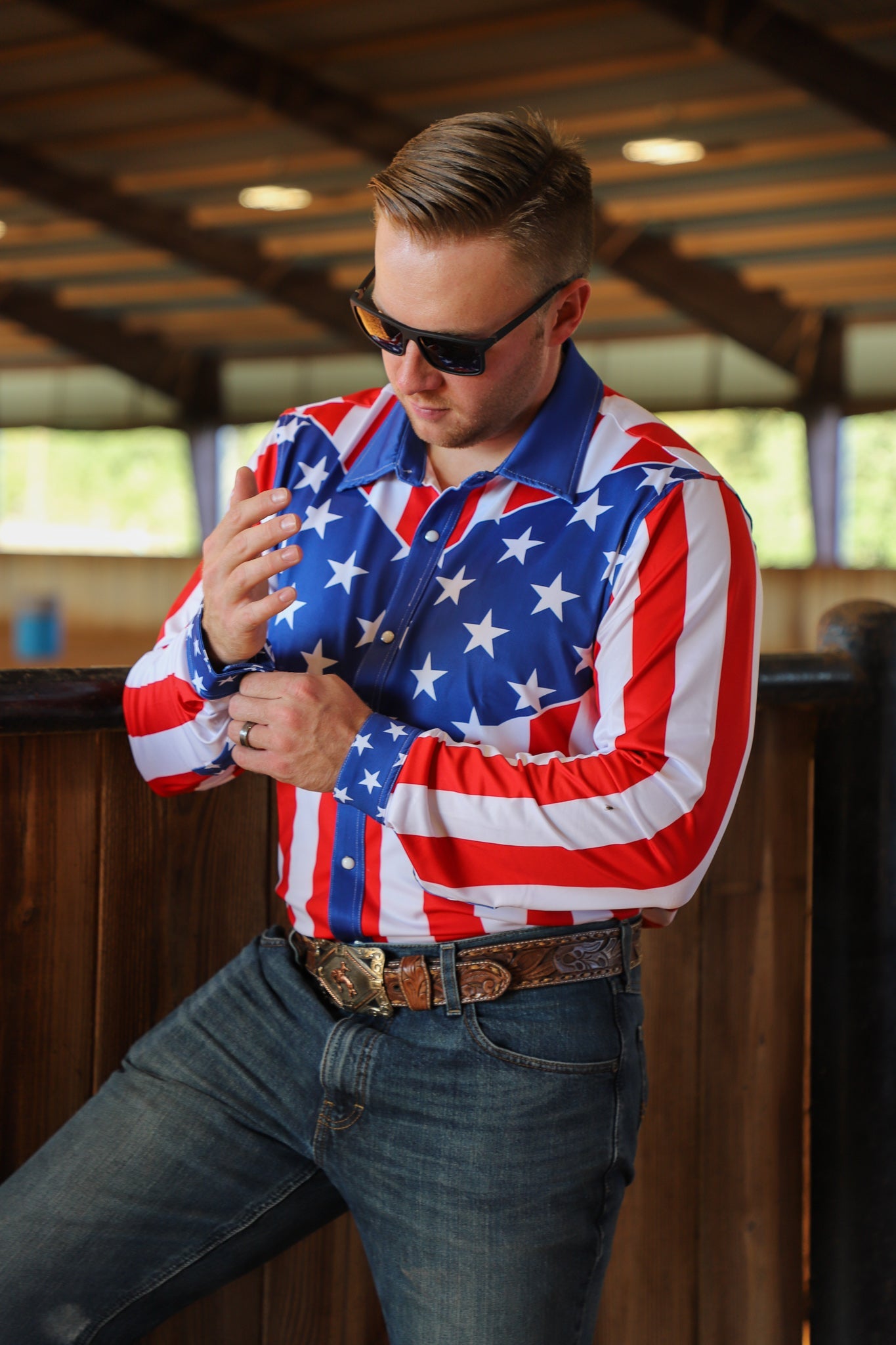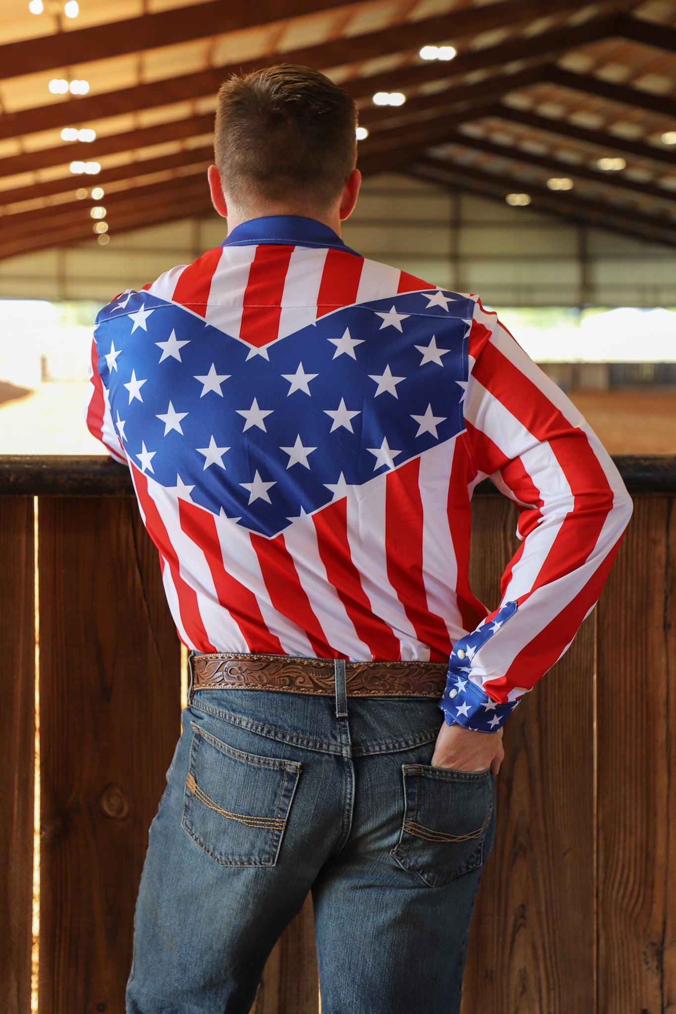AMERICAN FLAG MEN'S PERFORMANCE RODEO SHIRT