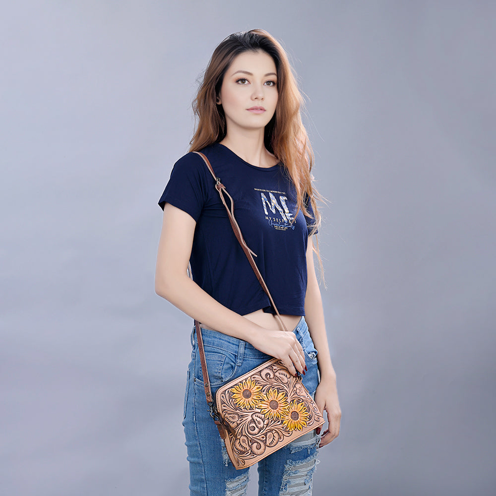 American Darling ADBG840 Crossbody Hand Tooled Embossed Genuine Leather Genuine Leather Women Bag Western Handbag Purse