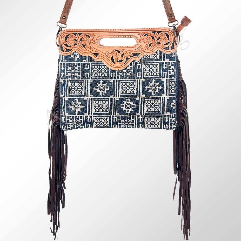 OHLAY KB336 Cross Body Upcycled Canvas Genuine Leather women bag western handbag purse