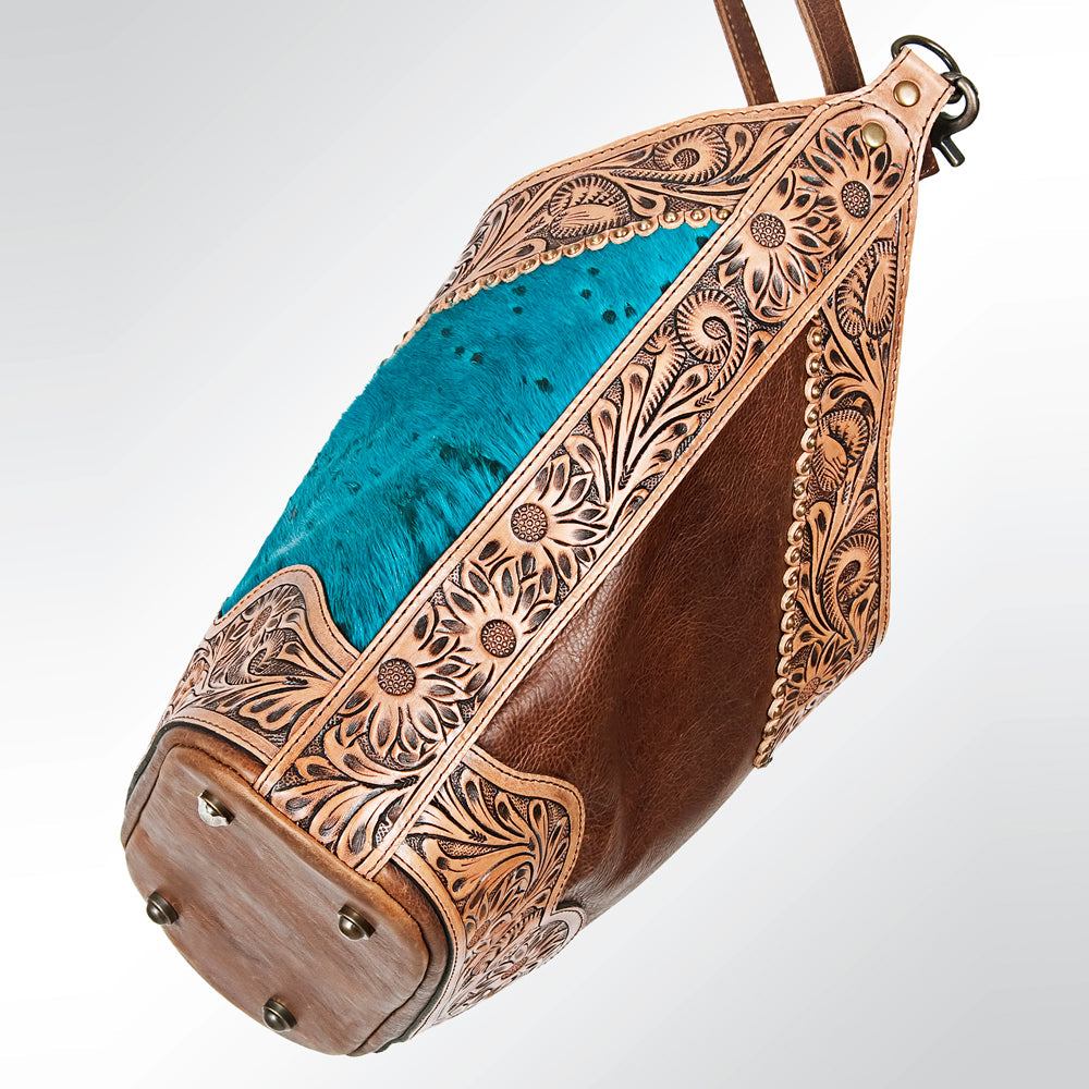 American Darling Canteen Hand Tooled Hair On Genuine Leather women bag western handbag purse