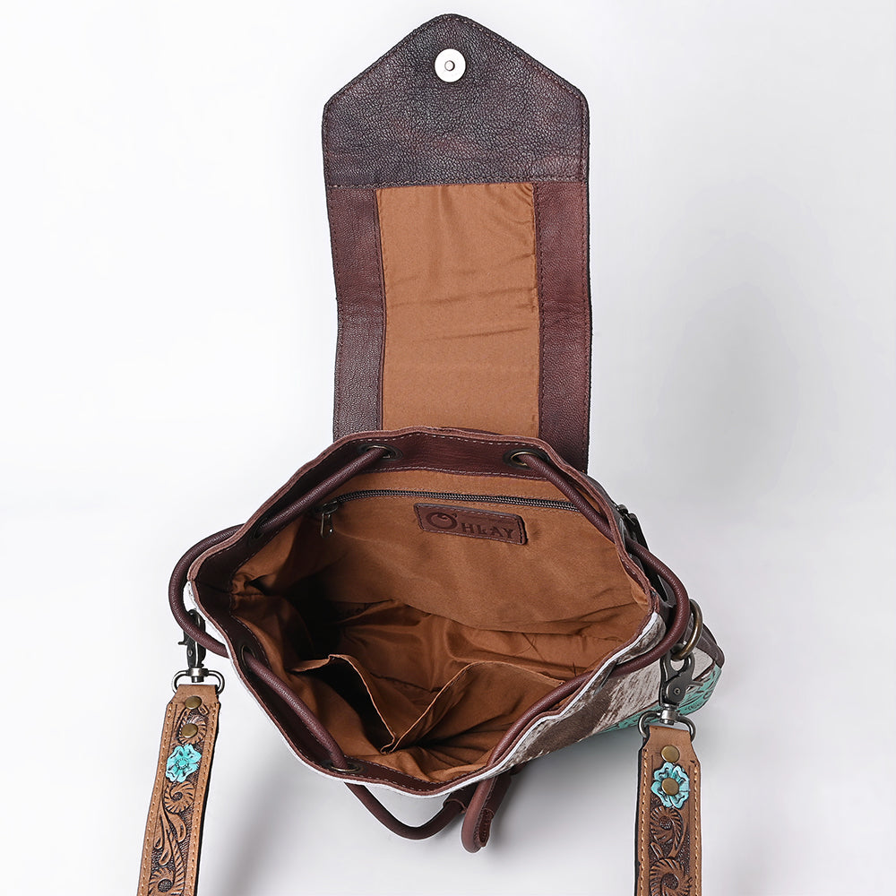 OHLAY KB111 Backpack Hand Tooled Upcycled Canvas Hair-On Genuine Leather women bag western handbag purse