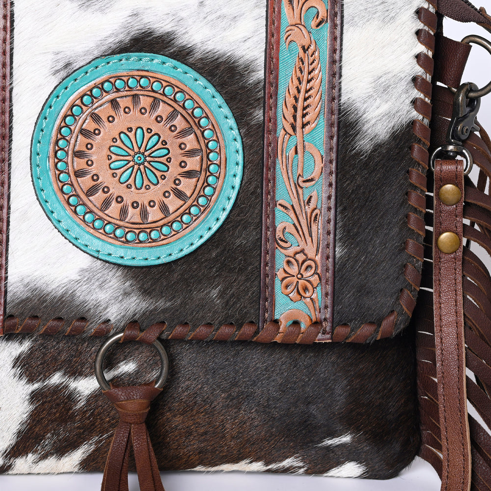 OHLAY KBG280 Cross Body Hand Tooled Hair-On Genuine Leather women bag western handbag purse