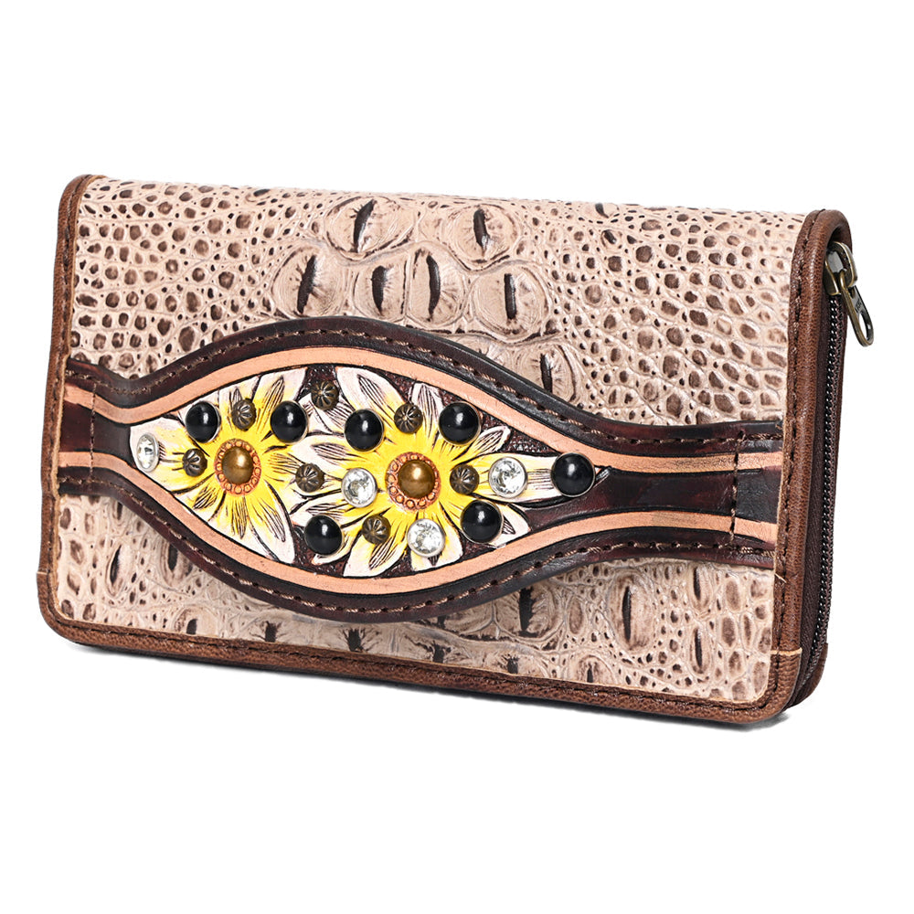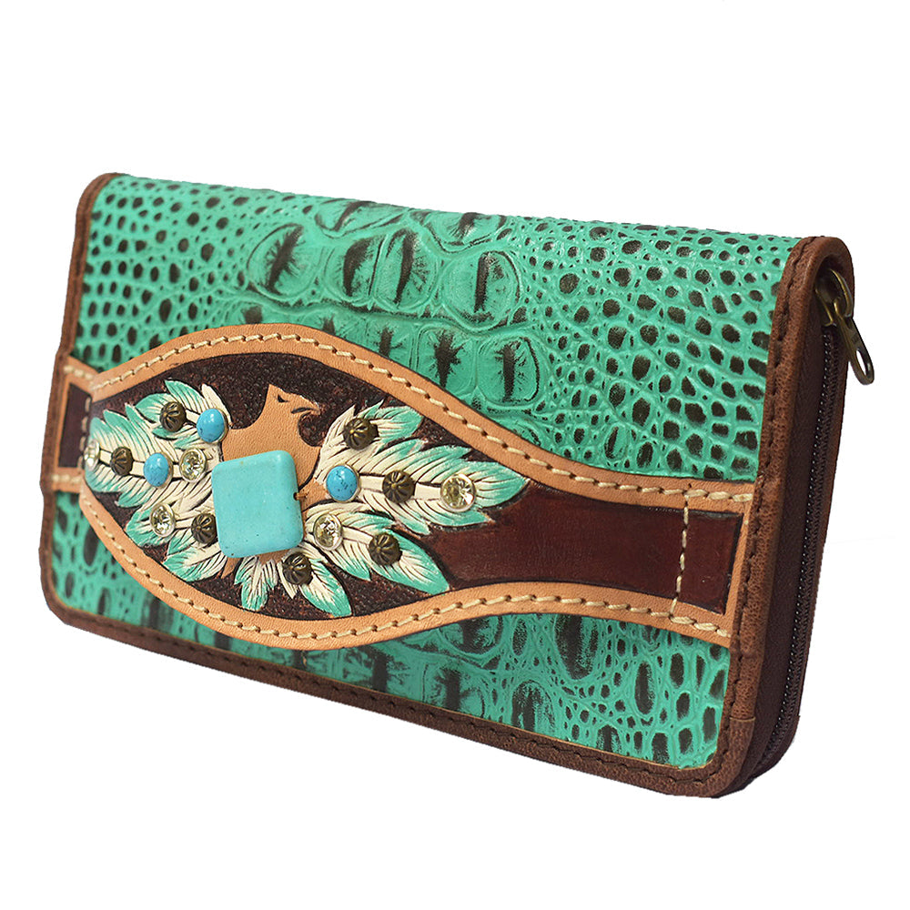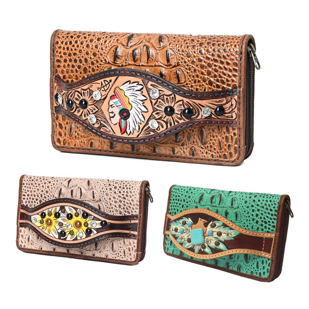 American Darling Clutch Hand Tooled Crocodile Embossed Genuine Leather Women Bag Western Handbag Purse