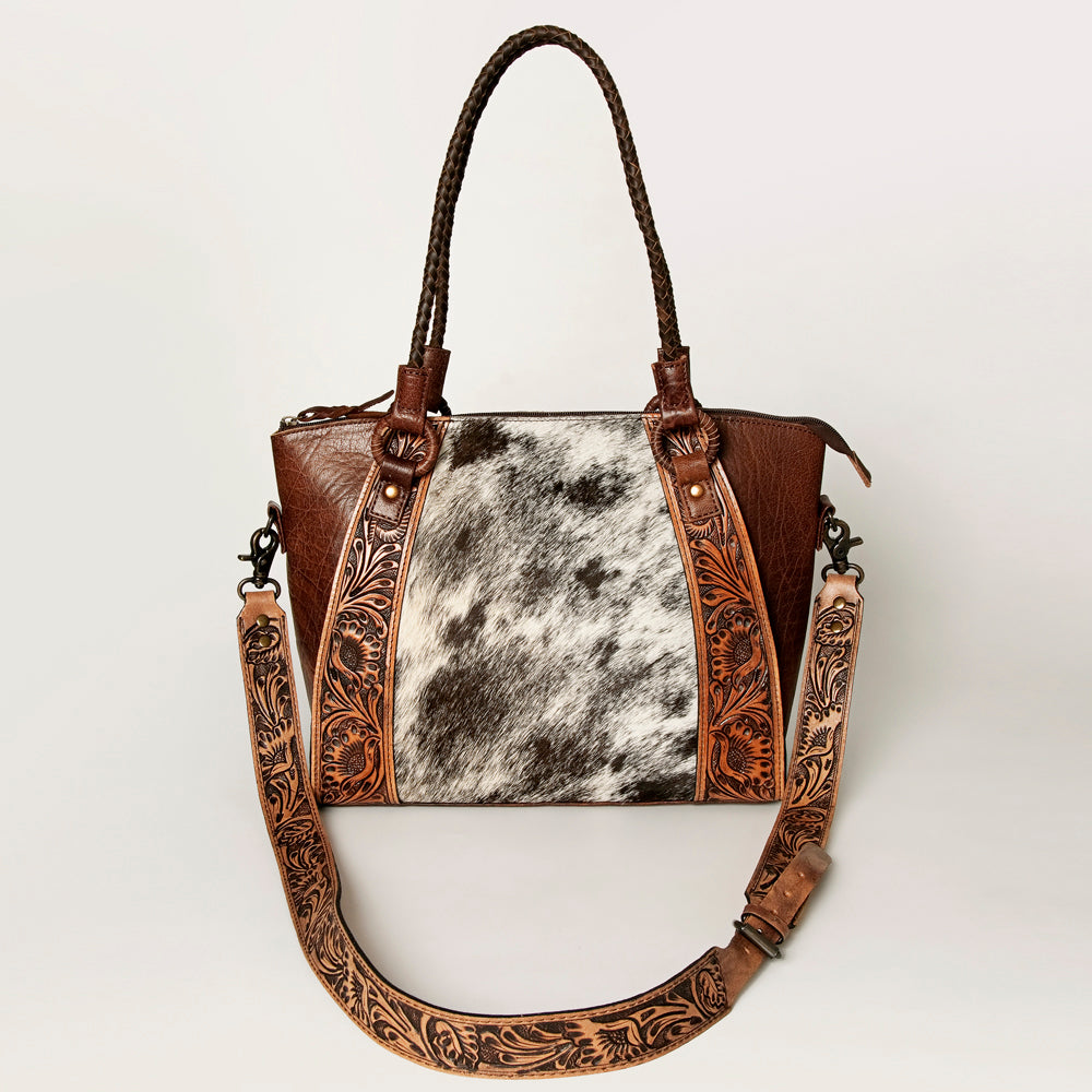 American Darling ADBG923 Tote Hand Tooled Hair-On Genuine Leather Women Bag Western Handbag Purse