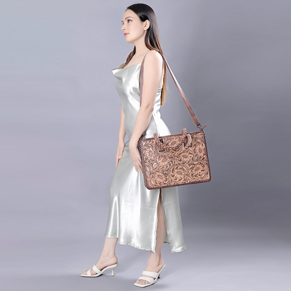 American Darling ADBG1428 Briefcase Hand Tooled Genuine Leather women bag western handbag purse