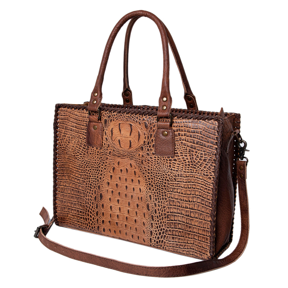 American Darling Large Crossbody Beautifully Hand Tooled Crocodile embossed Genuine Leather women bag western handbag purse