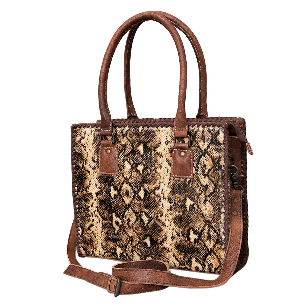 OHLAY KB630 TOTE Hand Tooled Upcycled Canvas Hair-on Genuine Leather women bag western handbag purse