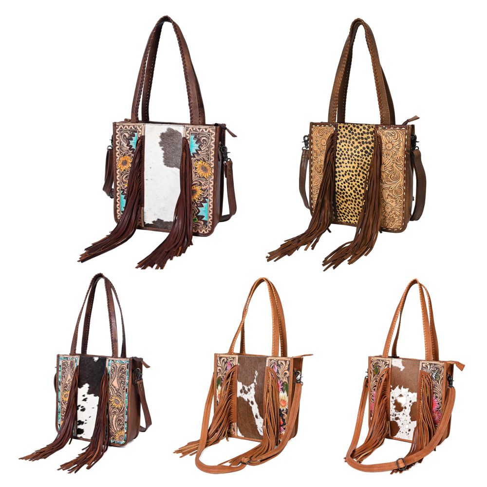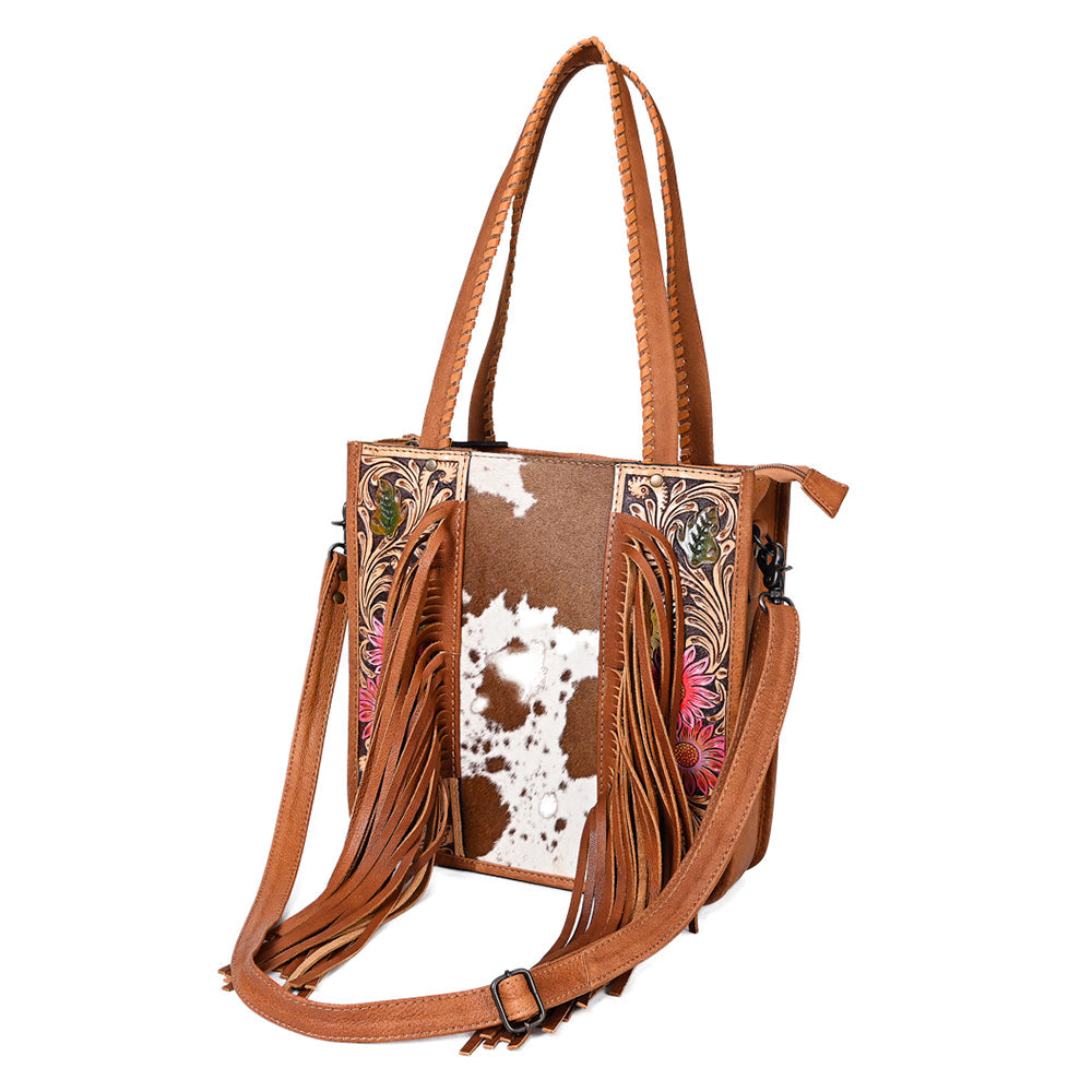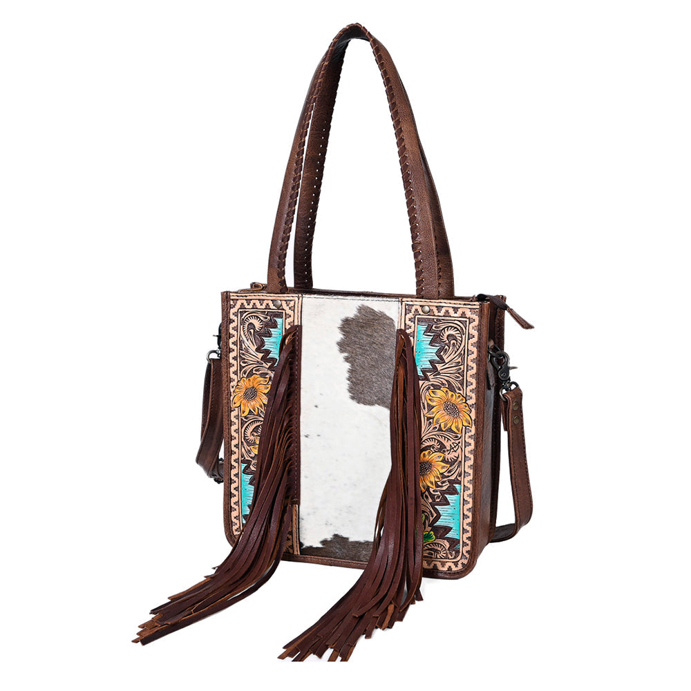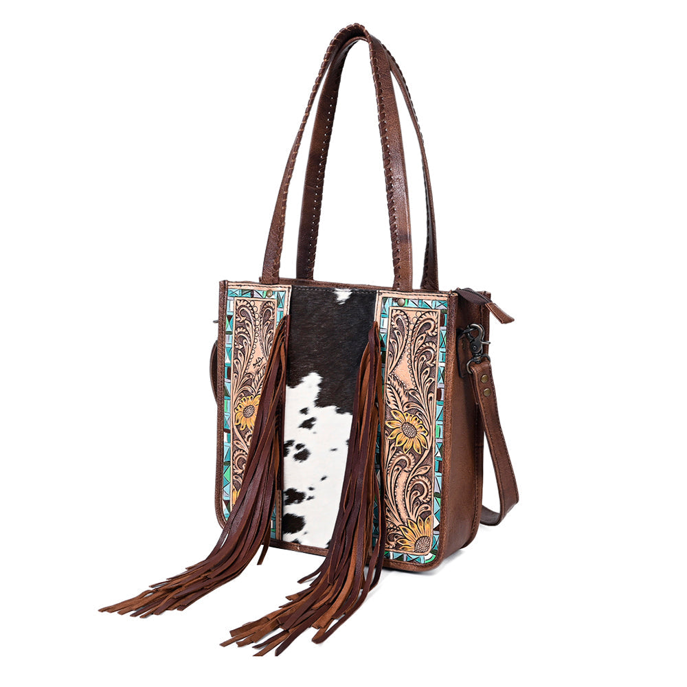 American Darling Tote Hand Tooled Hair-On Genuine Leather women bag western handbag purse