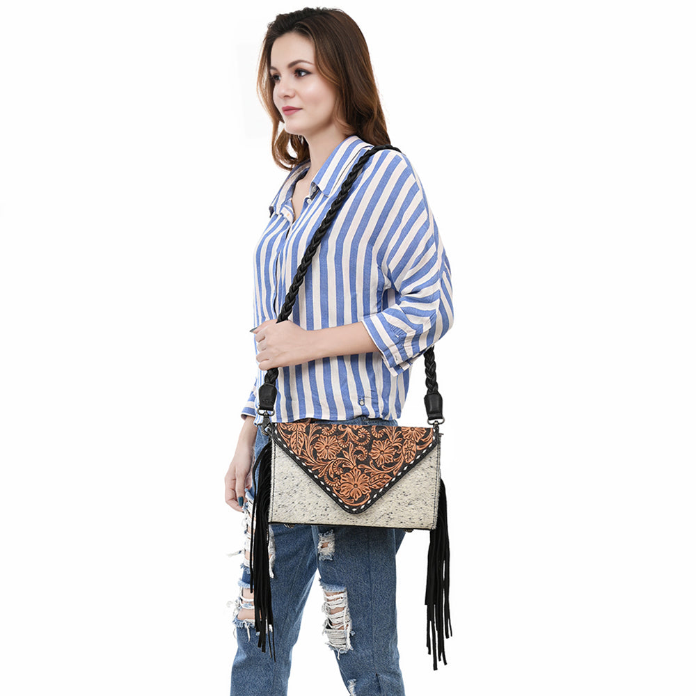 American Darling ADBG1460 Cross Body Hand Tooled Hair On Genuine Leather women bag western handbag purse