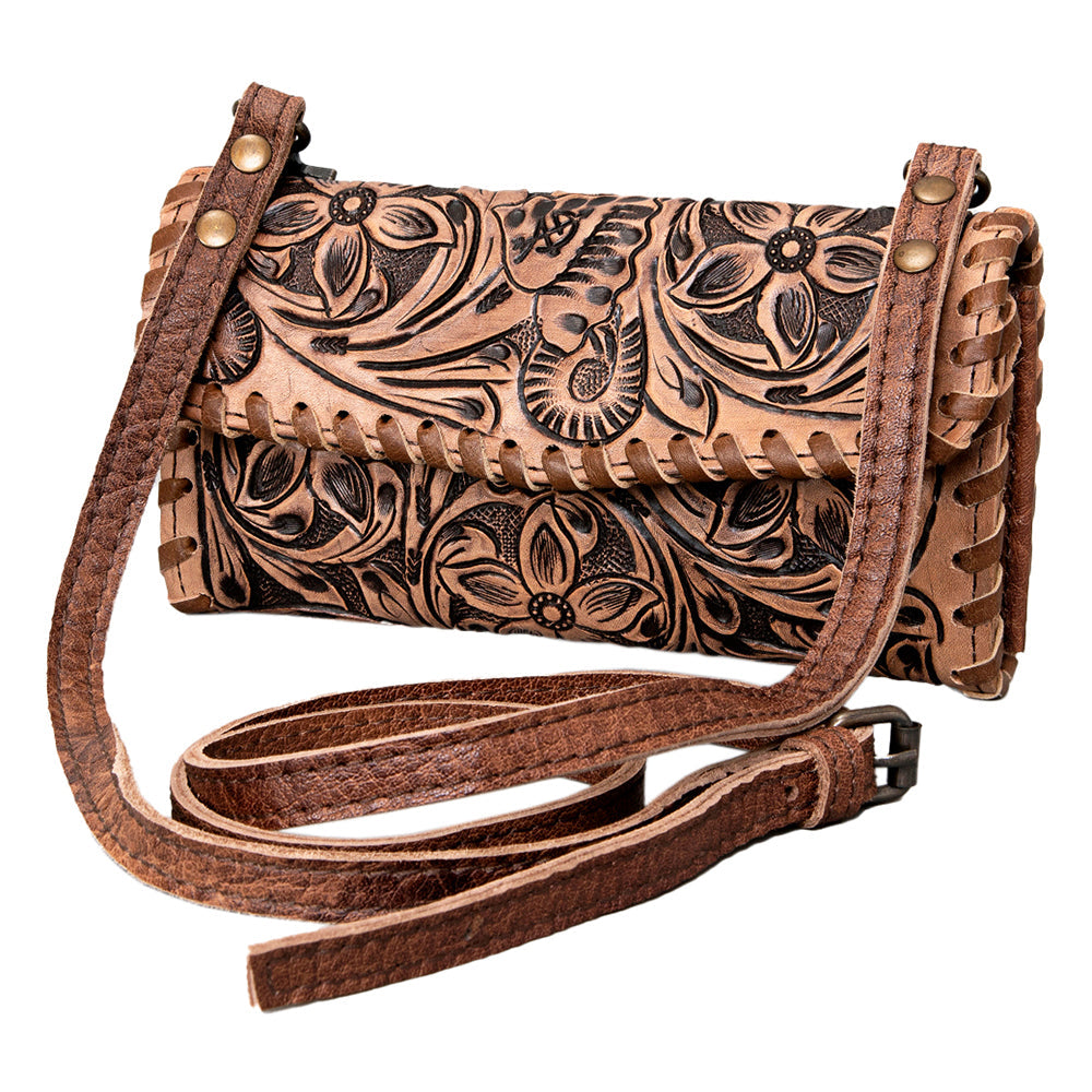 Small Crossbody Beautifully Hand Tooled Genuine Leather women bag western handbag purse