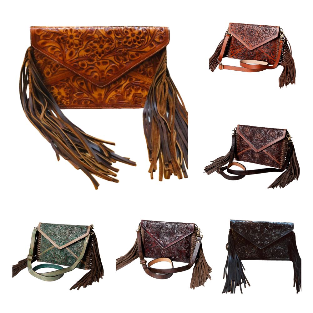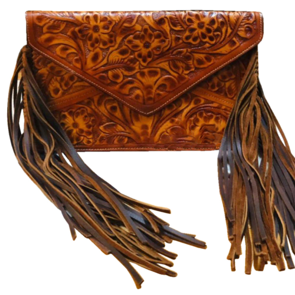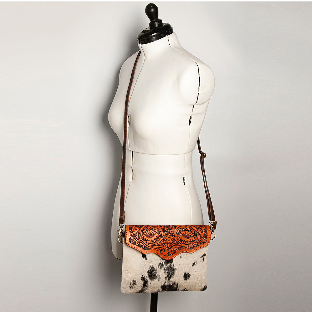 American Darling Envelope Hand Tooled Hair On Genuine Leather Women Bag Western Handbag Purse