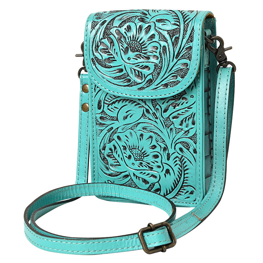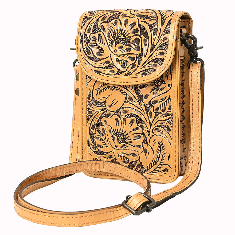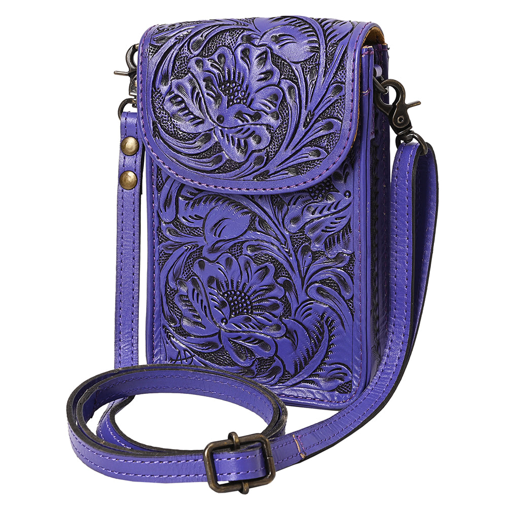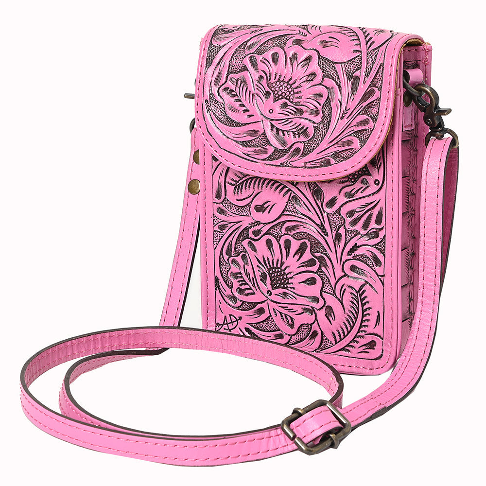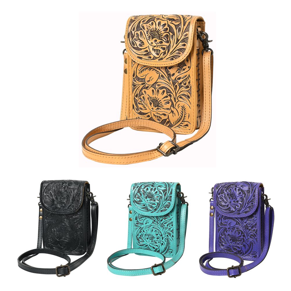 American Darling Cell Phone Holder Hand Tooled Genuine Leather Women Bag Western Handbag Purse