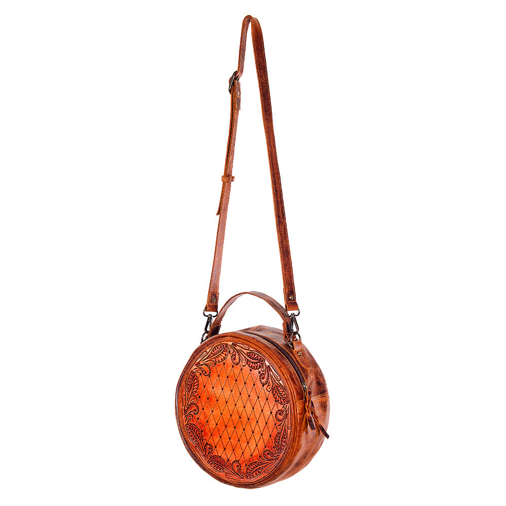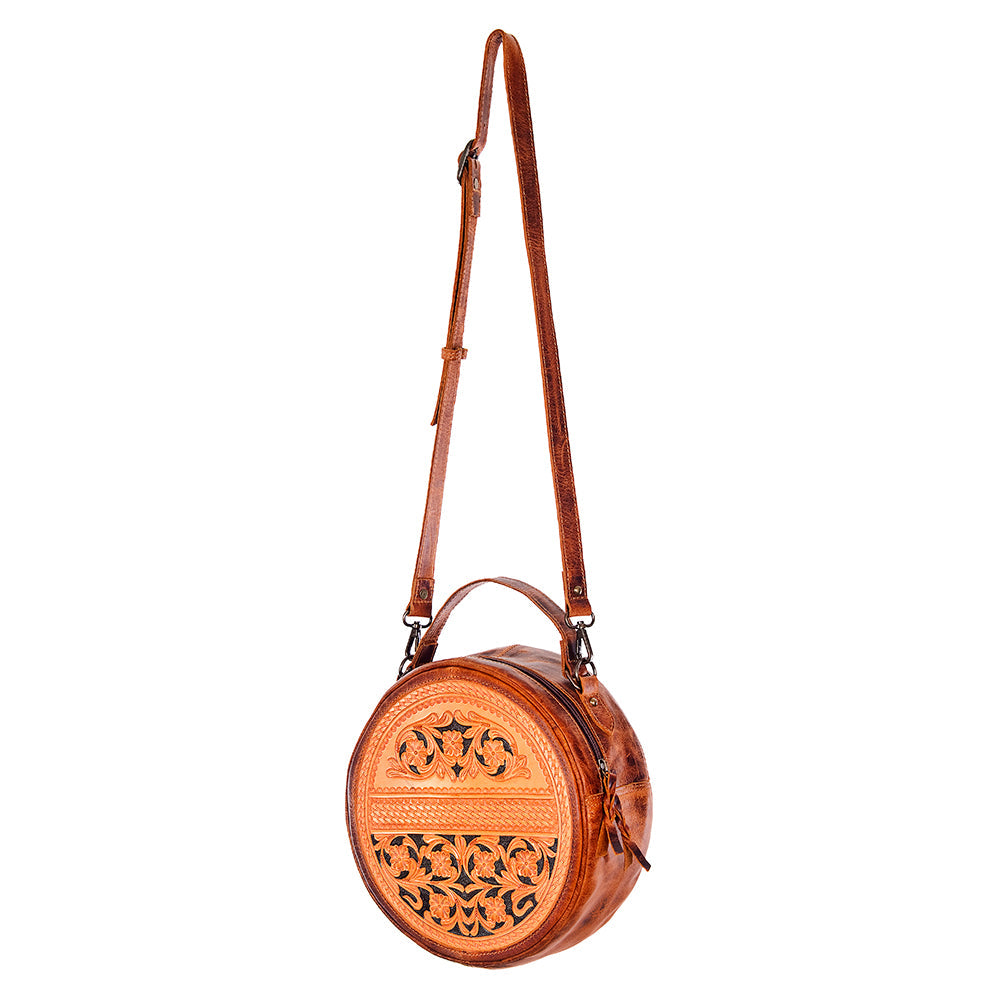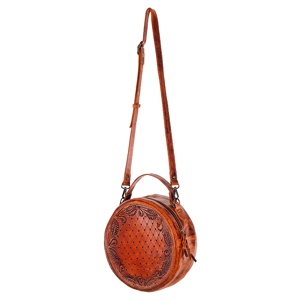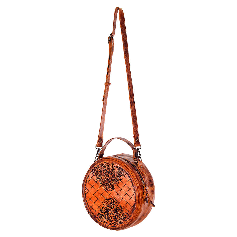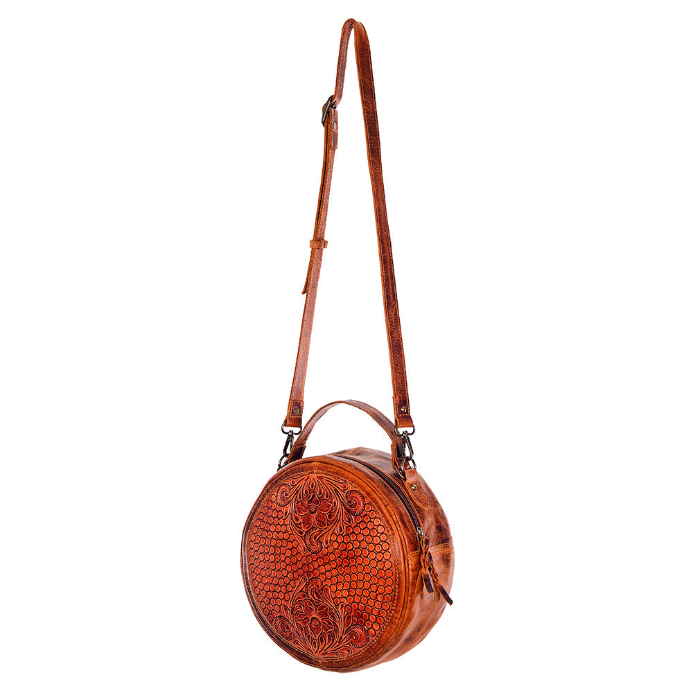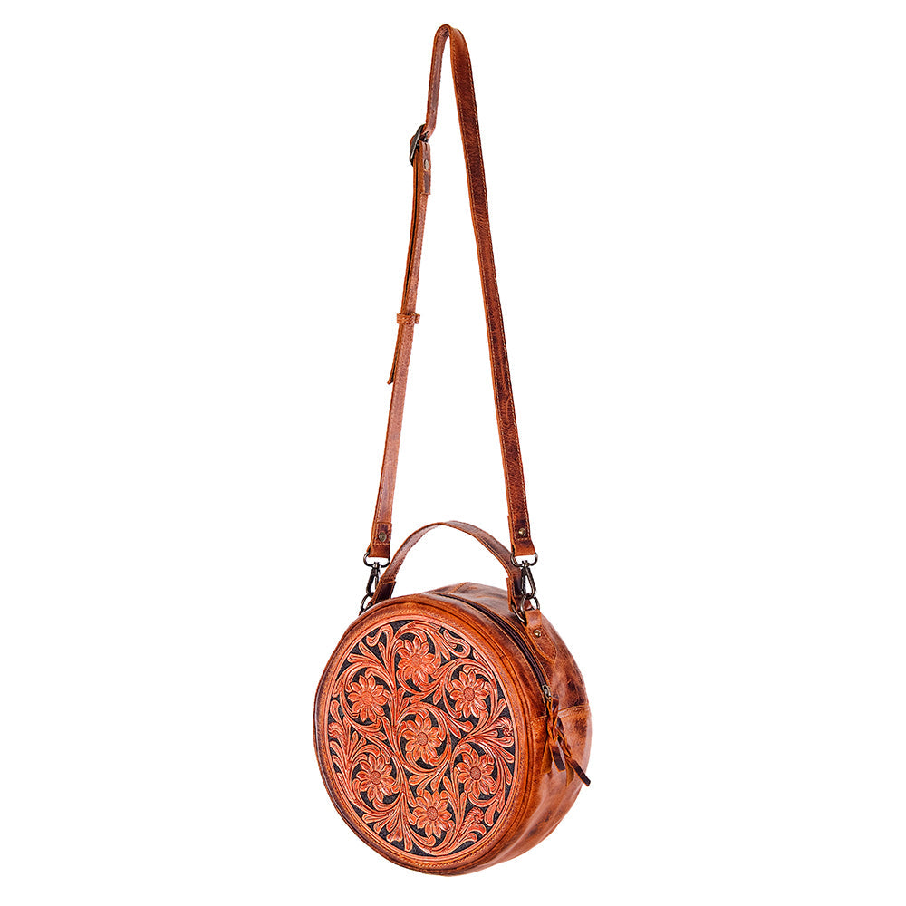 American Darling ADBG498A Canteen Hand Tooled Genuine Leather Women Bag Western Handbag Purse