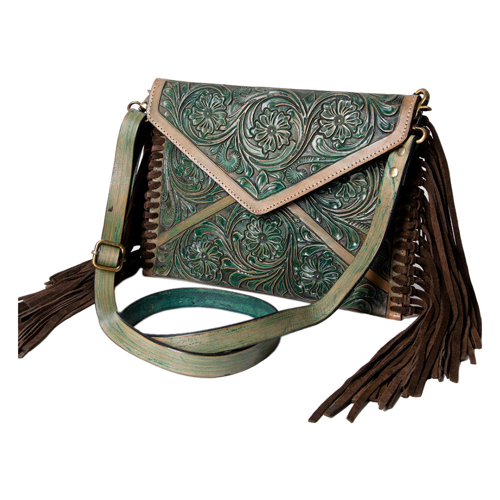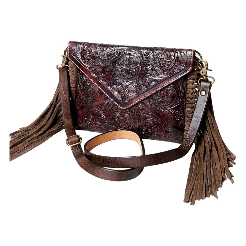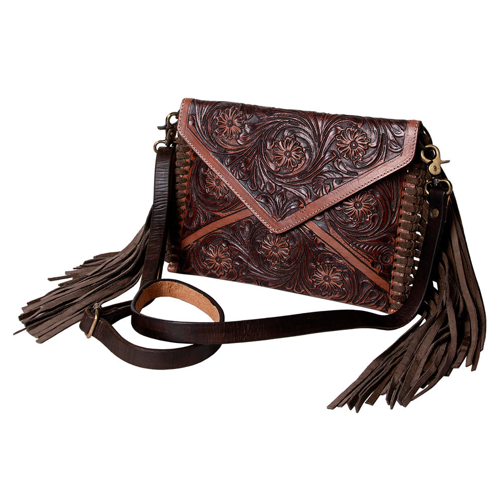 American Darling ADBG476ANTBR Envelope Hand Tooled Genuine Leather Women Bag Western Handbag Purse