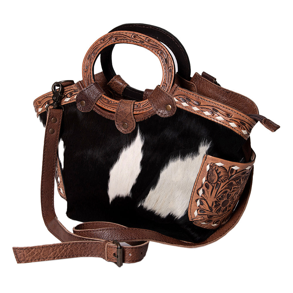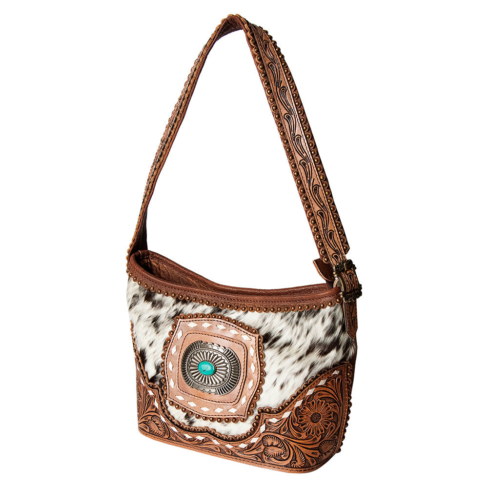 American Darling Hand Tooled Hair On Genuine Leather Women Bag Western Handbag Purse