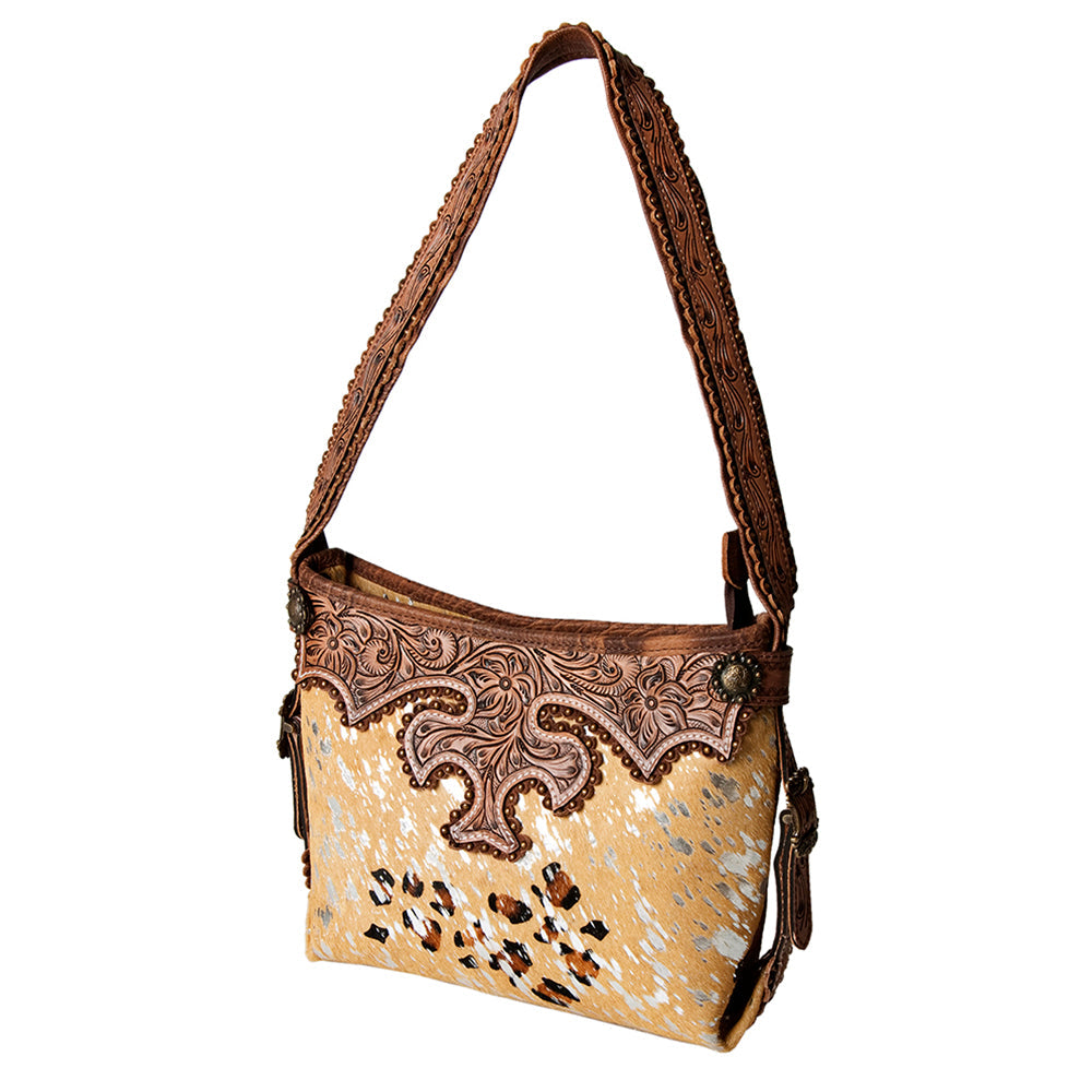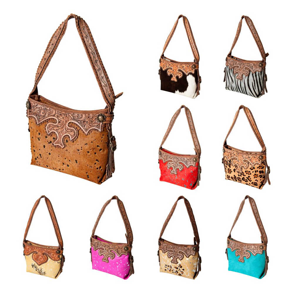 American Darling Messenger Hand Tooled Hair-On Genuine Leather women bag western handbag purse