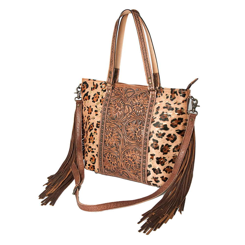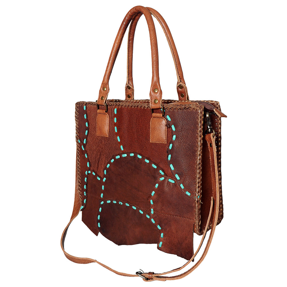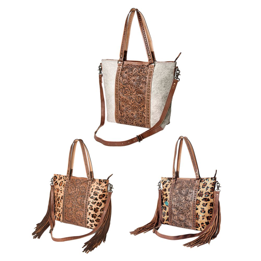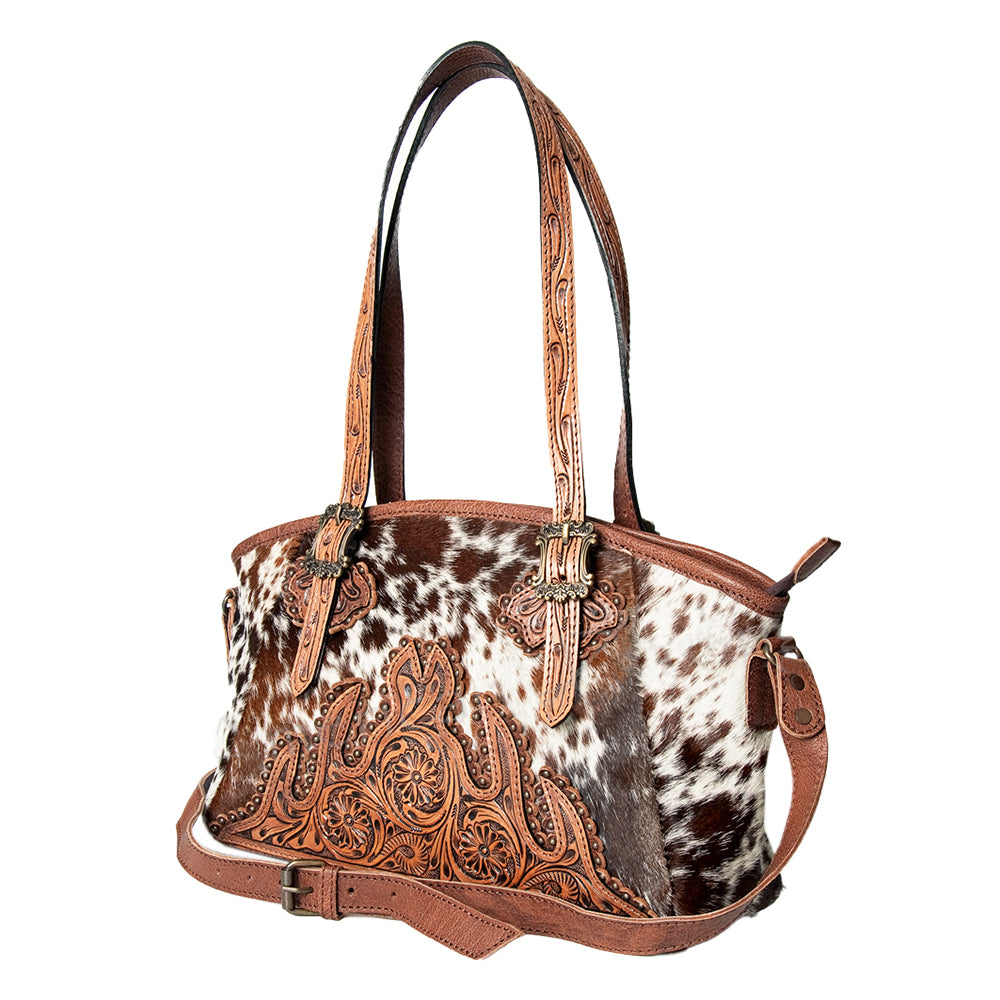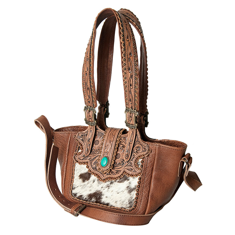 American Darling ADBG502ABRAH Tote Hand Tooled Hair-On Genuine Leather Women Bag Western Handbag Purse