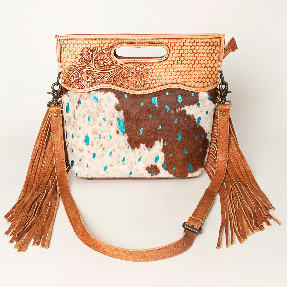 American Darling Hand Tooled Hair On Genuine Leather Women Bag Western Handbag Purse