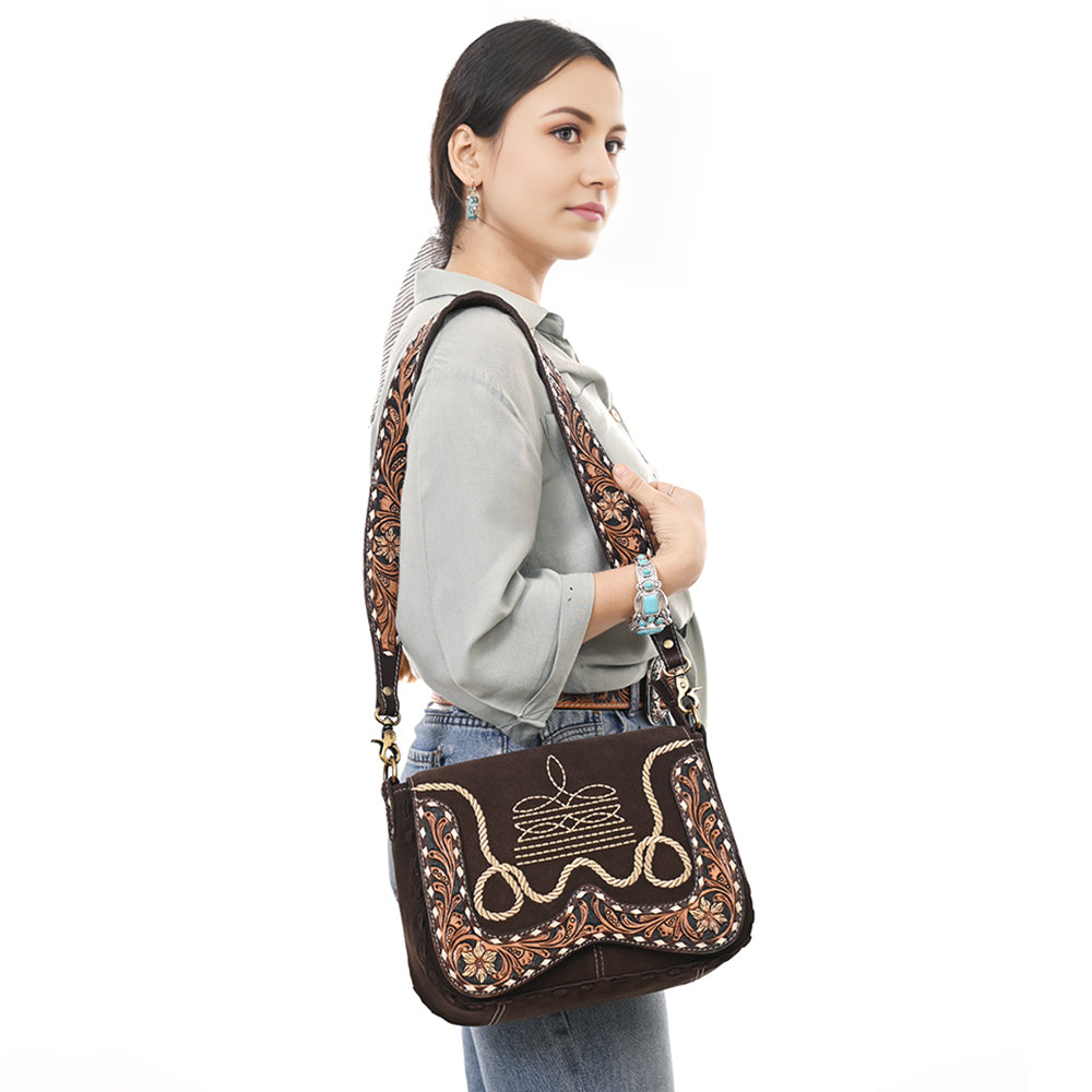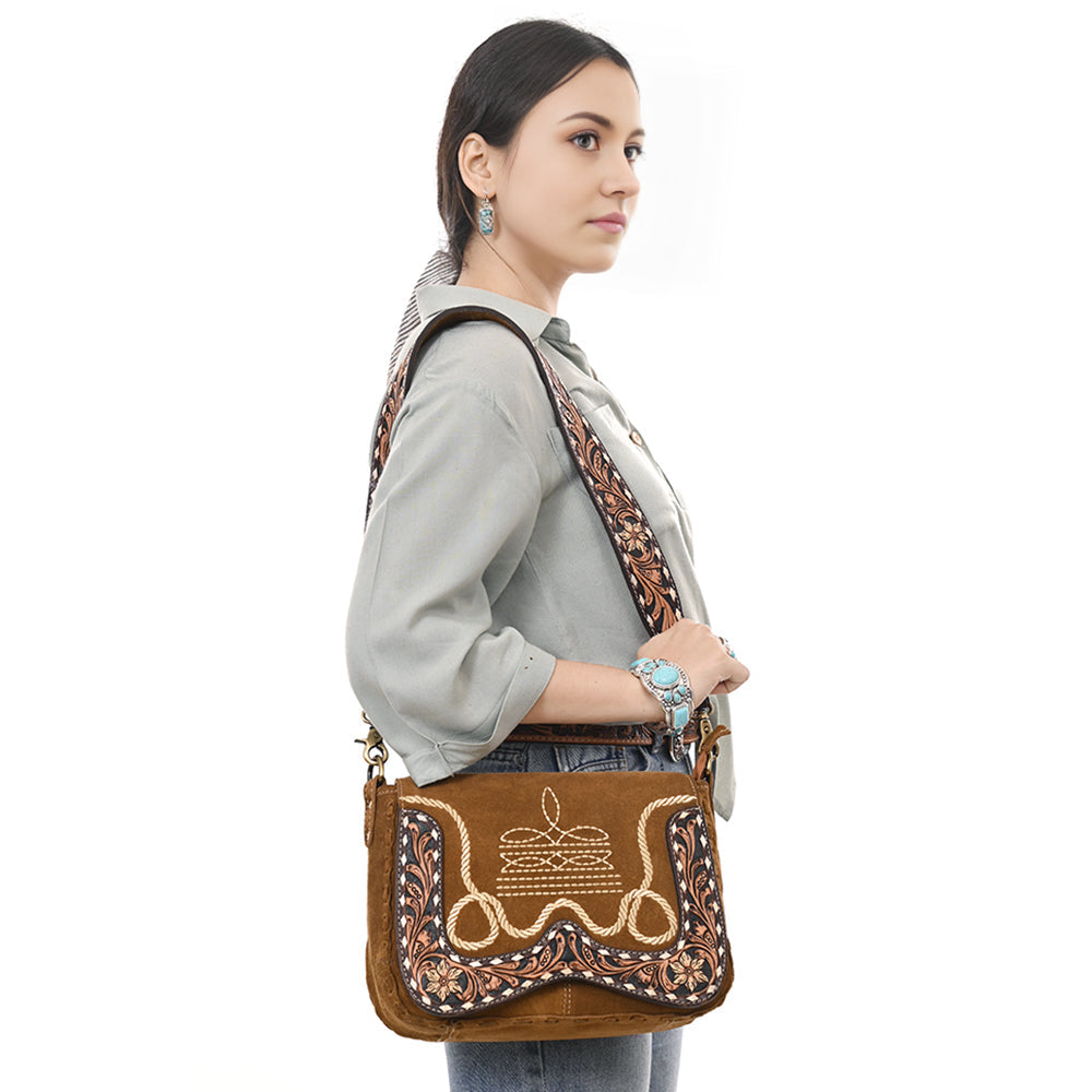American Darling Hand Tooled Genuine Leather Crossbody Bag