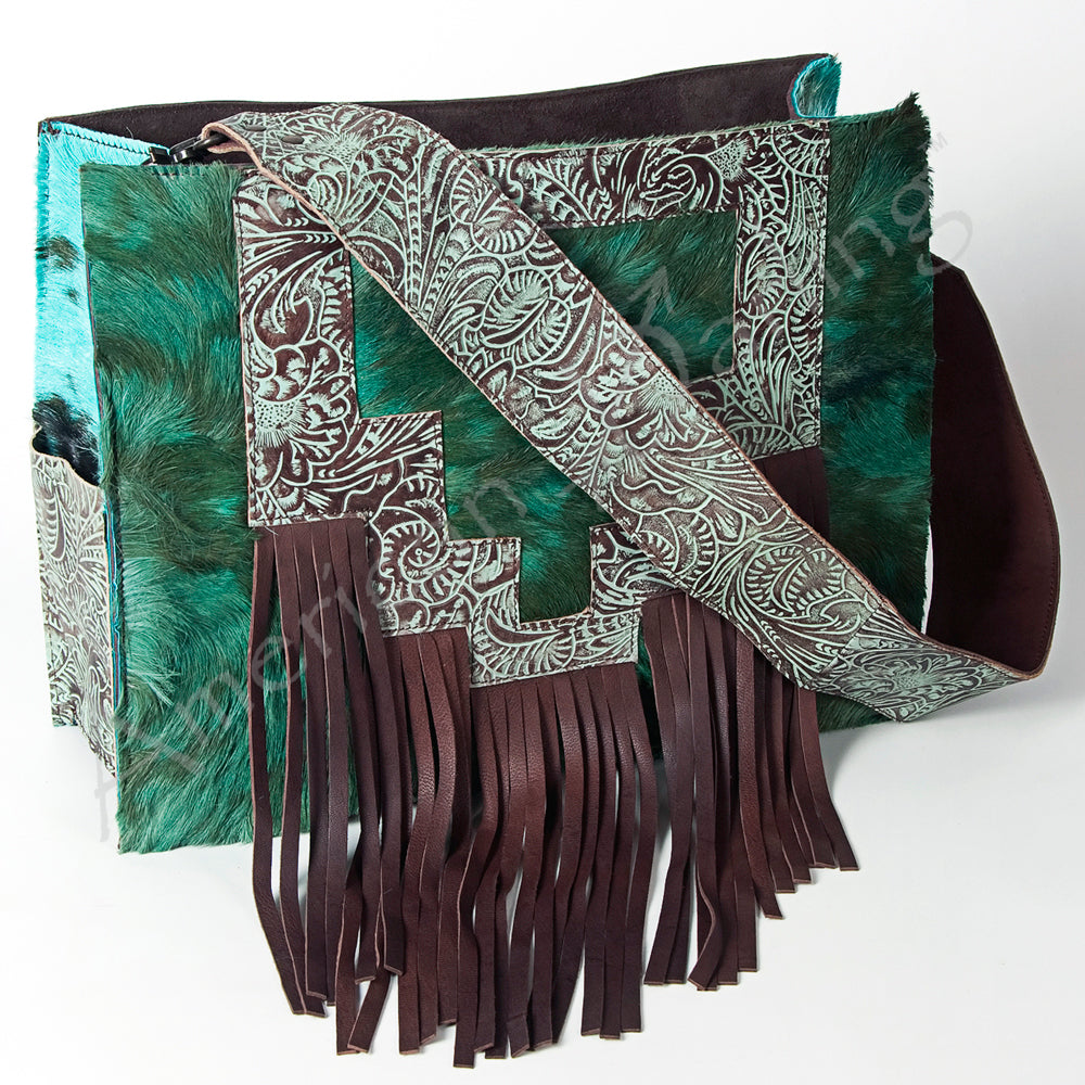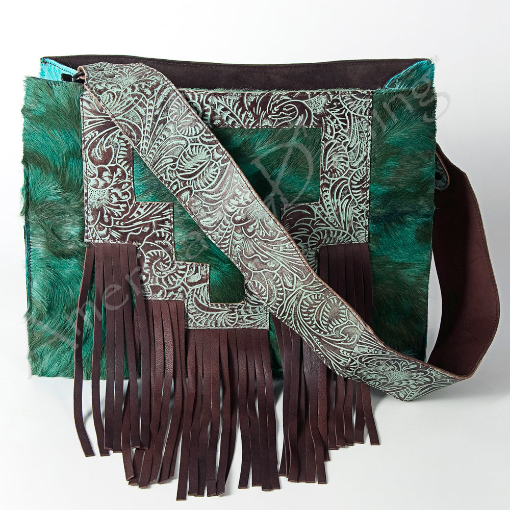 American Darling ADBGZ592A Messenger Hand Tooled Hair On Genuine Leather women bag western handbag purse