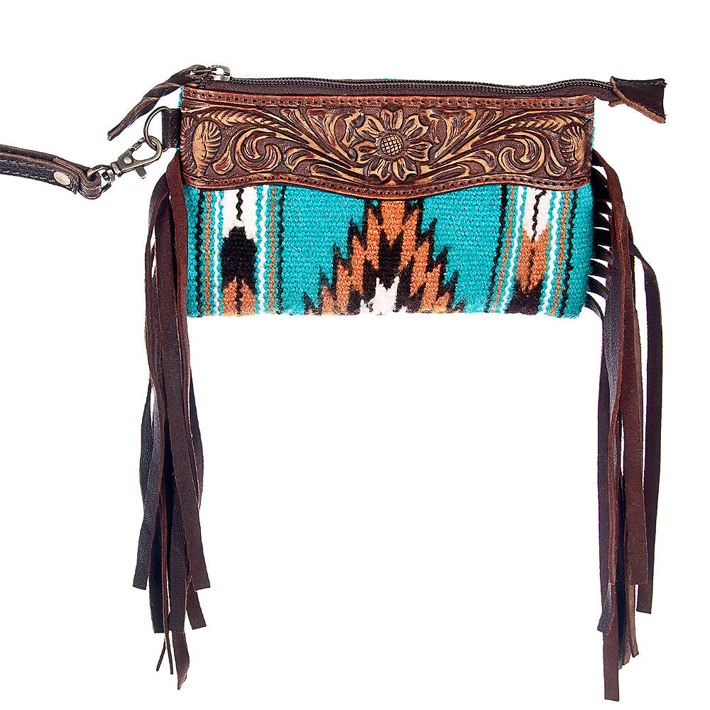 American Darling ADBGZ178 Wristlet Hand Tooled Saddle Blanket Genuine Leather Women Bag Western Handbag Purse