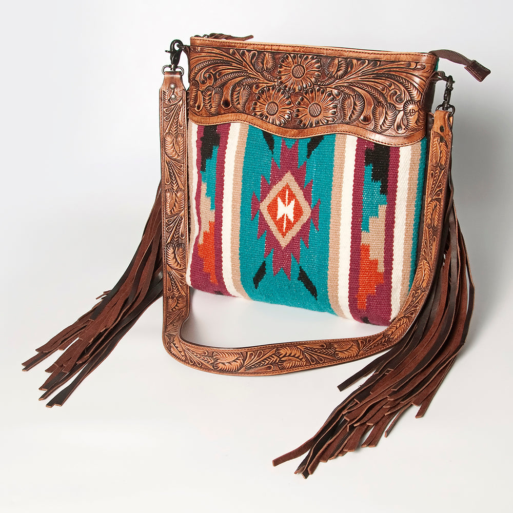 American Darling ADBGA283A Messenger Hand Tooled Saddle Blanket Genuine Leather women bag western handbag purse