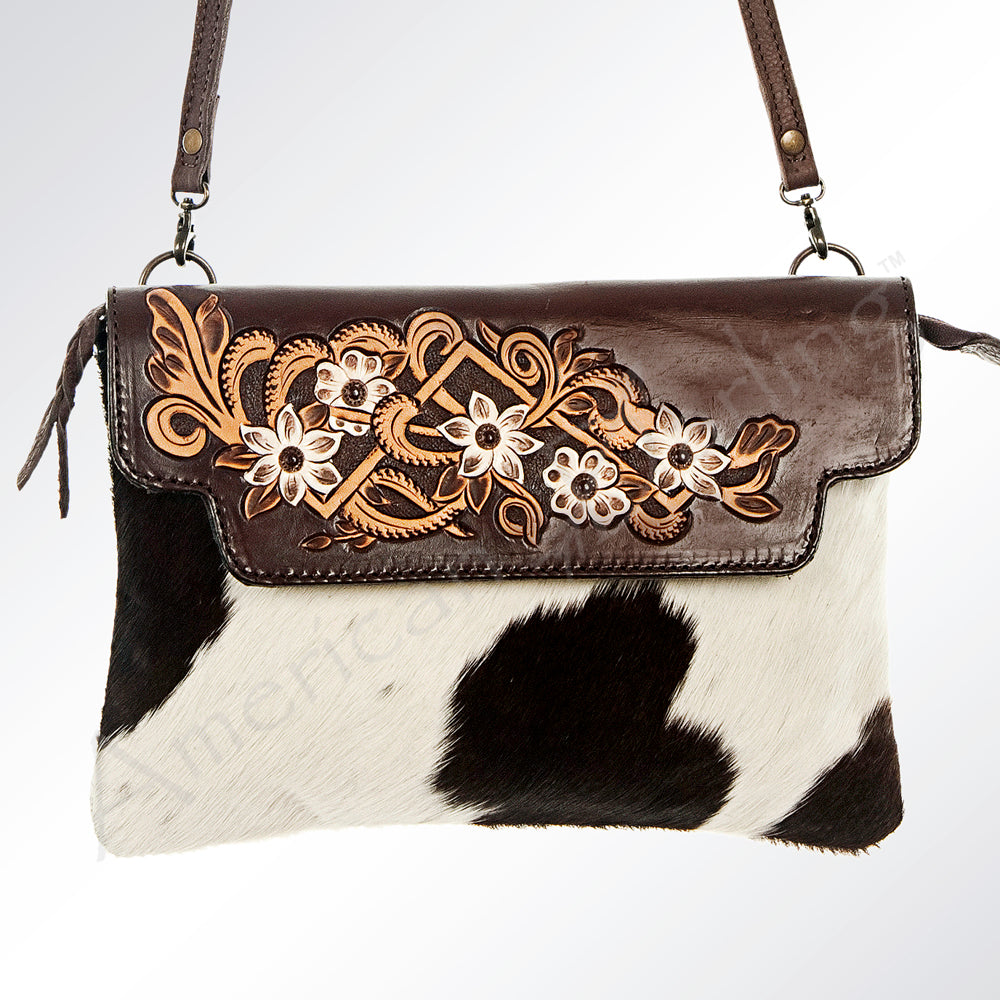 American Darling ADBG241 Envelope Hand Tooled Hair On Genuine Leather Women Bag Western Handbag Purse