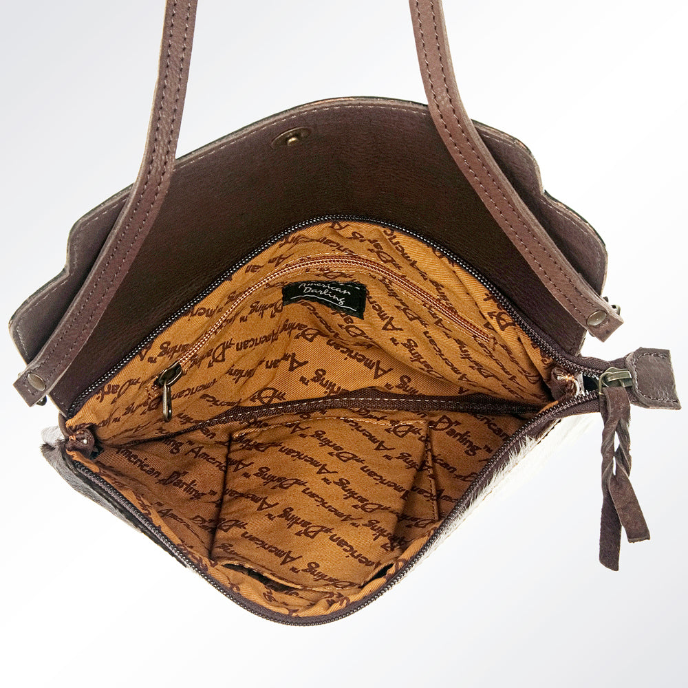 American Darling ADBGA239B Cross Body Hand Tooled Hair On Genuine Leather women bag western handbag purse