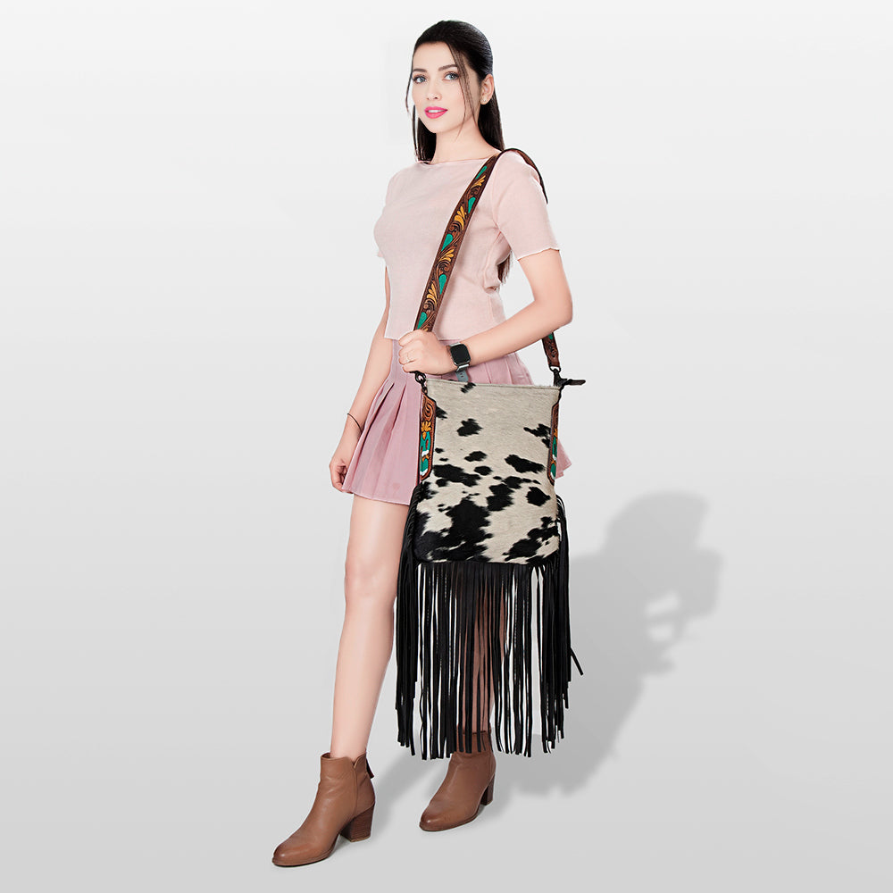 American Darling ADBGZ132BKW Large Crossbody Hair On Genuine Leather Women Bag Western Handbag Purse