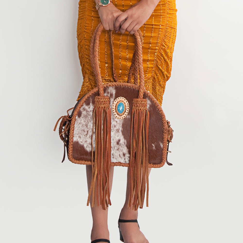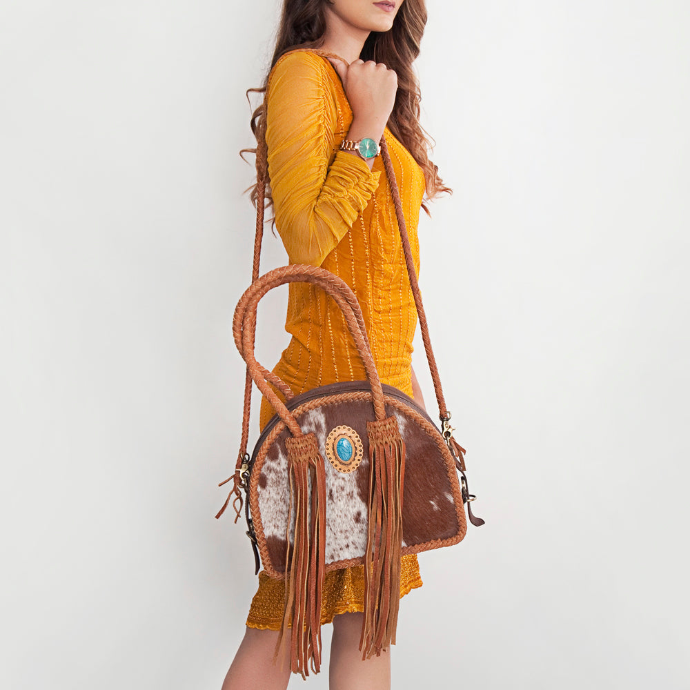 American Darling ADBGS174CHETRQ Duffel Hair On Genuine Leather Women Bag Western Handbag Purse