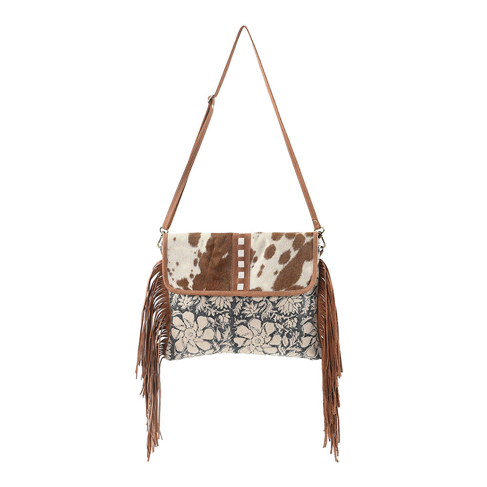 OHLAY KB187 Cross Body Upcycled Canvas Hair-On Genuine Leather women bag western handbag purse