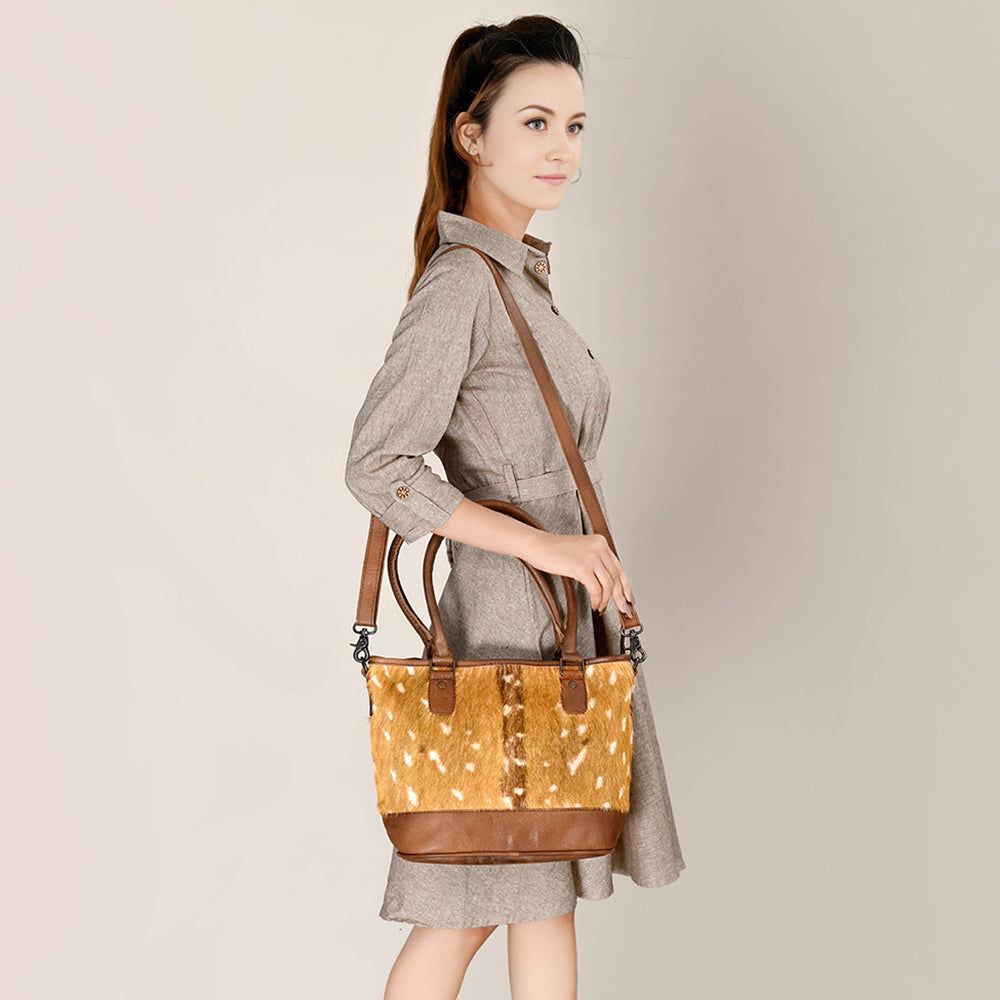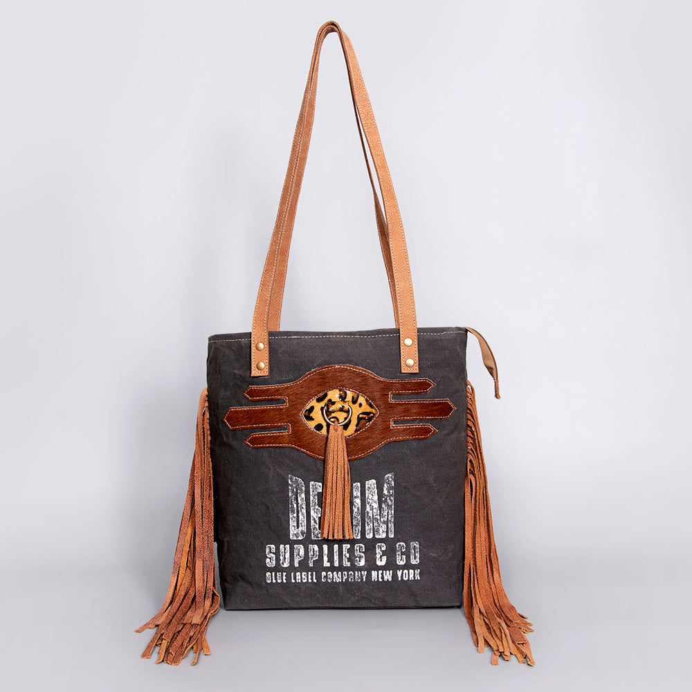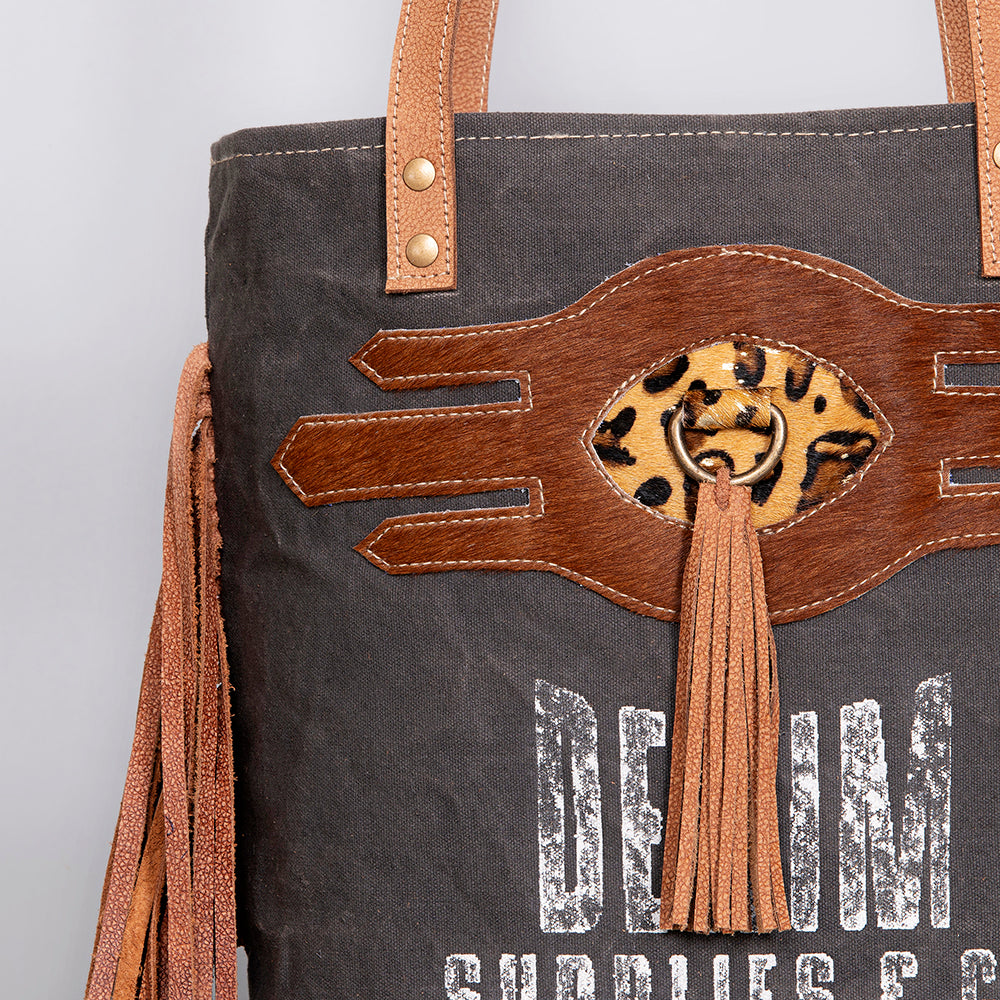 OHLAY KB462 TOTE Upcycled Canvas Hair-on Genuine Leather women bag western handbag purse