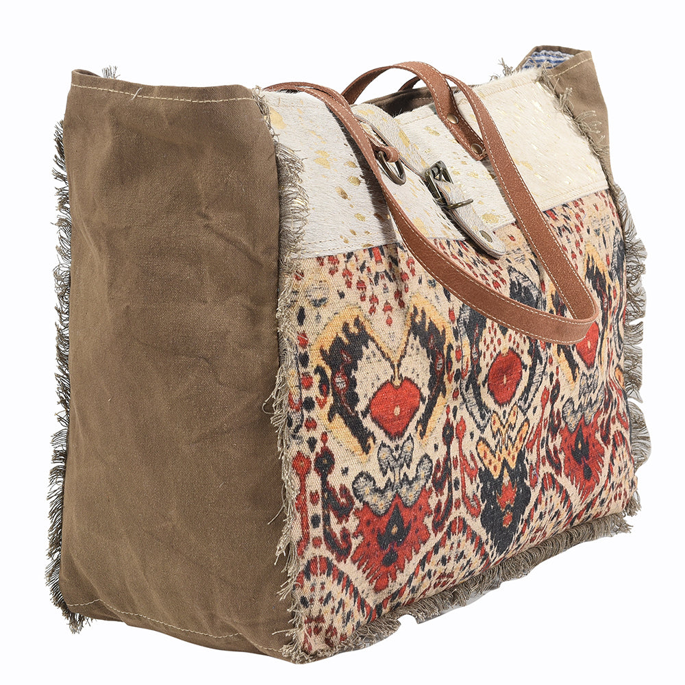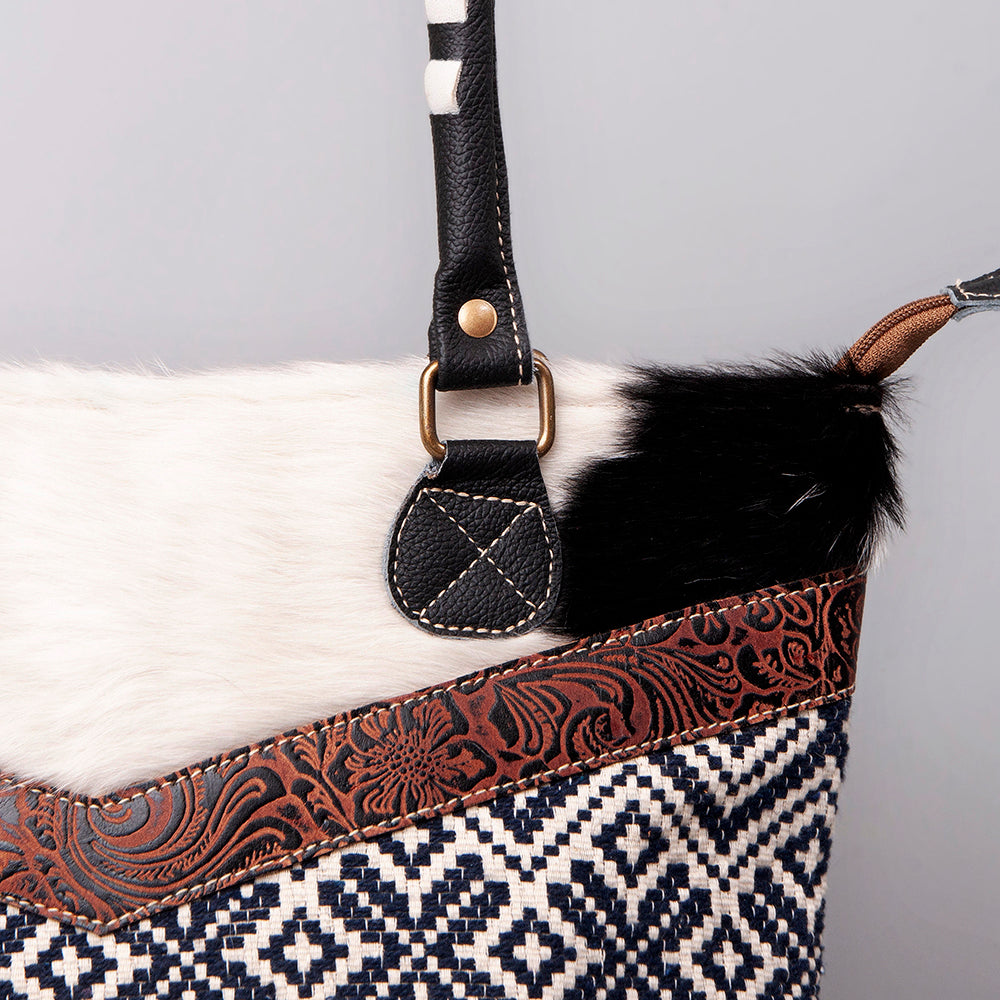 OHLAY KB376 TOTE Hand Tooled Upcycled Wool Upcycled Canvas Hair-on Genuine Leather women bag western handbag purse
