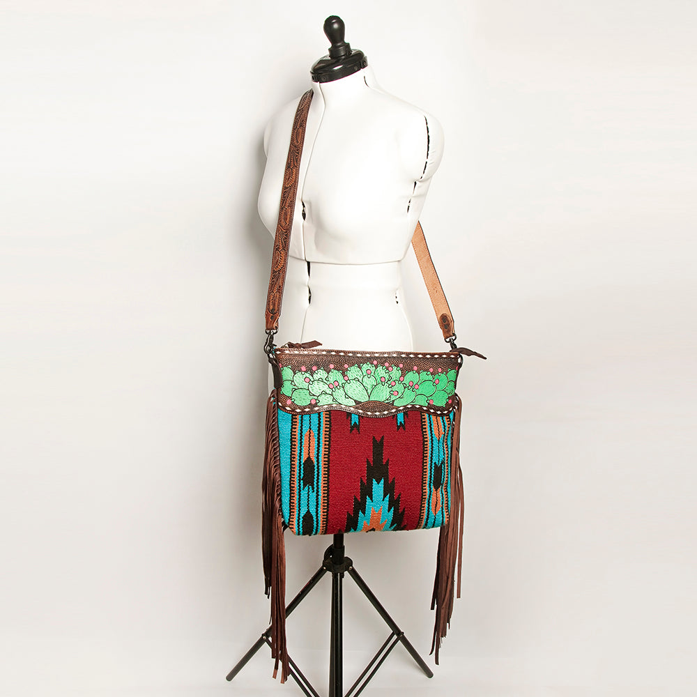 OHLAY OHV348 Cross Body Hand Tooled Upcycled Wool Upcycled Canvas Hair-On Genuine Leather women bag western handbag purse