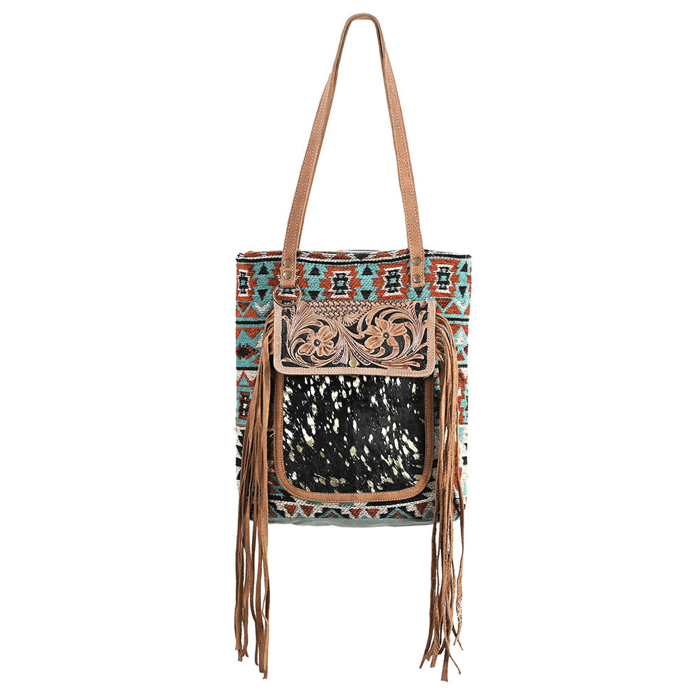OHLAY OHV270 TOTE Hand Tooled Upcycled Wool Upcycled Canvas Hair-on Genuine Leather women bag western handbag purse